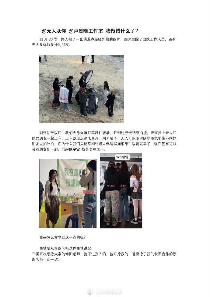 曝卢昱晓工作室私联站姐 关于卢昱晓站姐的爆料,现在的明星站姐真的能直接进入拍戏现场吗?站姐之间互相扯头花然后闹到rs,目前一方已举证,现在在等另一方自证。A站姐控诉为什么B可以先得到消息去近距离拍图,还抢她长期合作的的修图师说B利用云包场赚差价用特权进剧组拍别的演员的图卖钱!引发了其他演员的不满,工作室有工作人员和她走的很近…卢昱晓站姐非外景的棚拍也能进去拍照,出图角度跟工作室都差不多~甚至还有进组《云之羽》前的武训图。。。 站姐无人及你,卢昱晓 危险世界,卢昱晓站姐