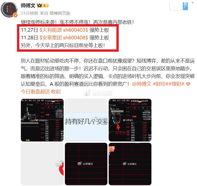 收盘点评:大盘不美丽 内部标吃大肉今天A股的表现,基本上是在预期之内,继续延续震荡。当两市成交量始终上不去,甚至大幅缩减,又遇到比较强的抛压位的时候,这种走势基本上是在预期之内的,今天大概率继续延续分歧。当然,对于震荡洗盘,不用过于担心,涨一天跌一天是很正常的事情。对于这样的行情,是风险也是机遇,就看你能不能把握住了,今天文总的内部老铁们是吃肉吃到爽了!还没跟上的老铁速速集合,刚刚发布了一只标的下午估计要爆发,一旦爆发至少+10%,懂得就马上滴滴我窗口!财经理财 今日看盘