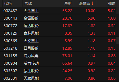 上证报中国证券网讯12月3日午后,风电板块震荡走强,截至13时25分,大金重工涨停,金雷股份涨近6%,运达股份、天能重工、日月股份等跟涨。