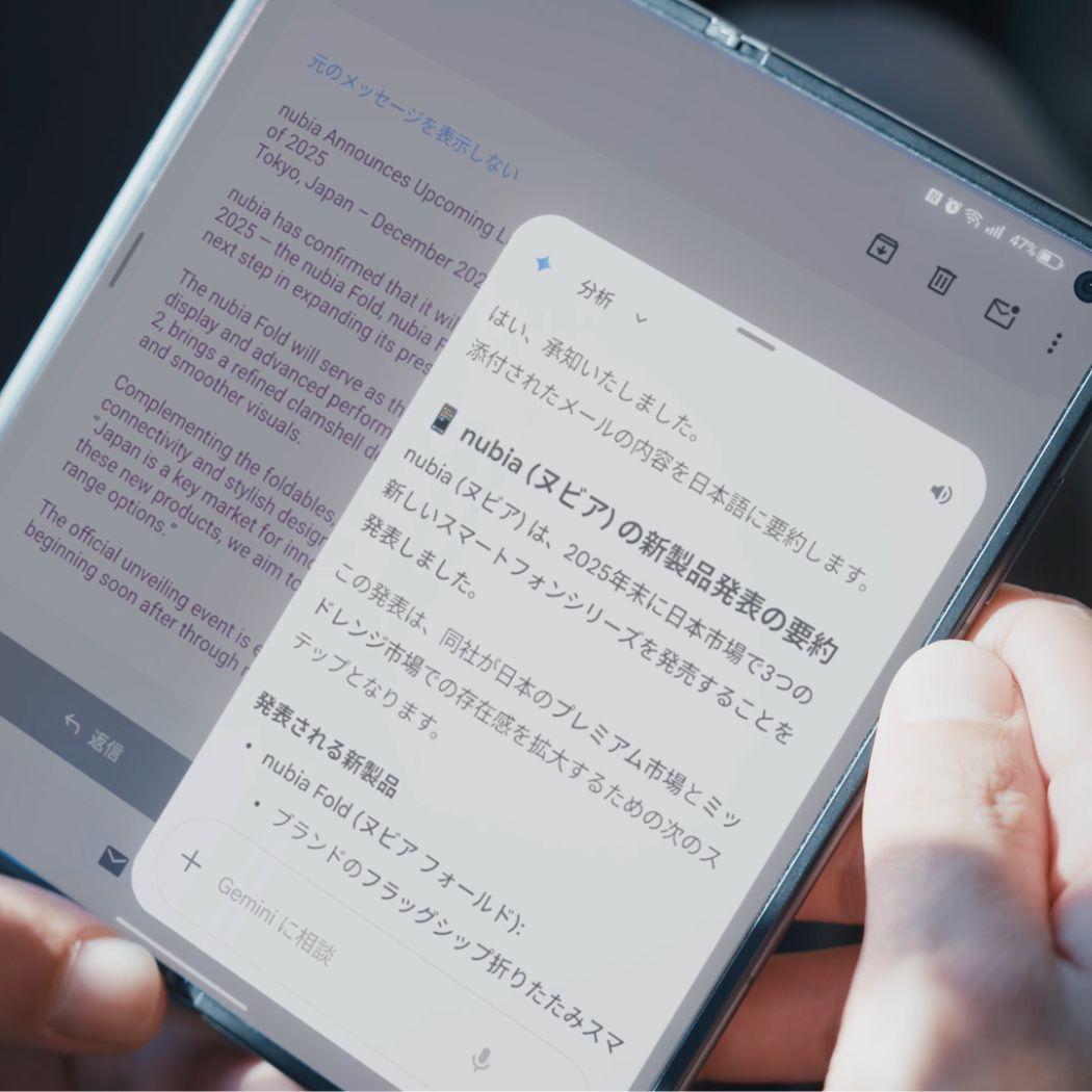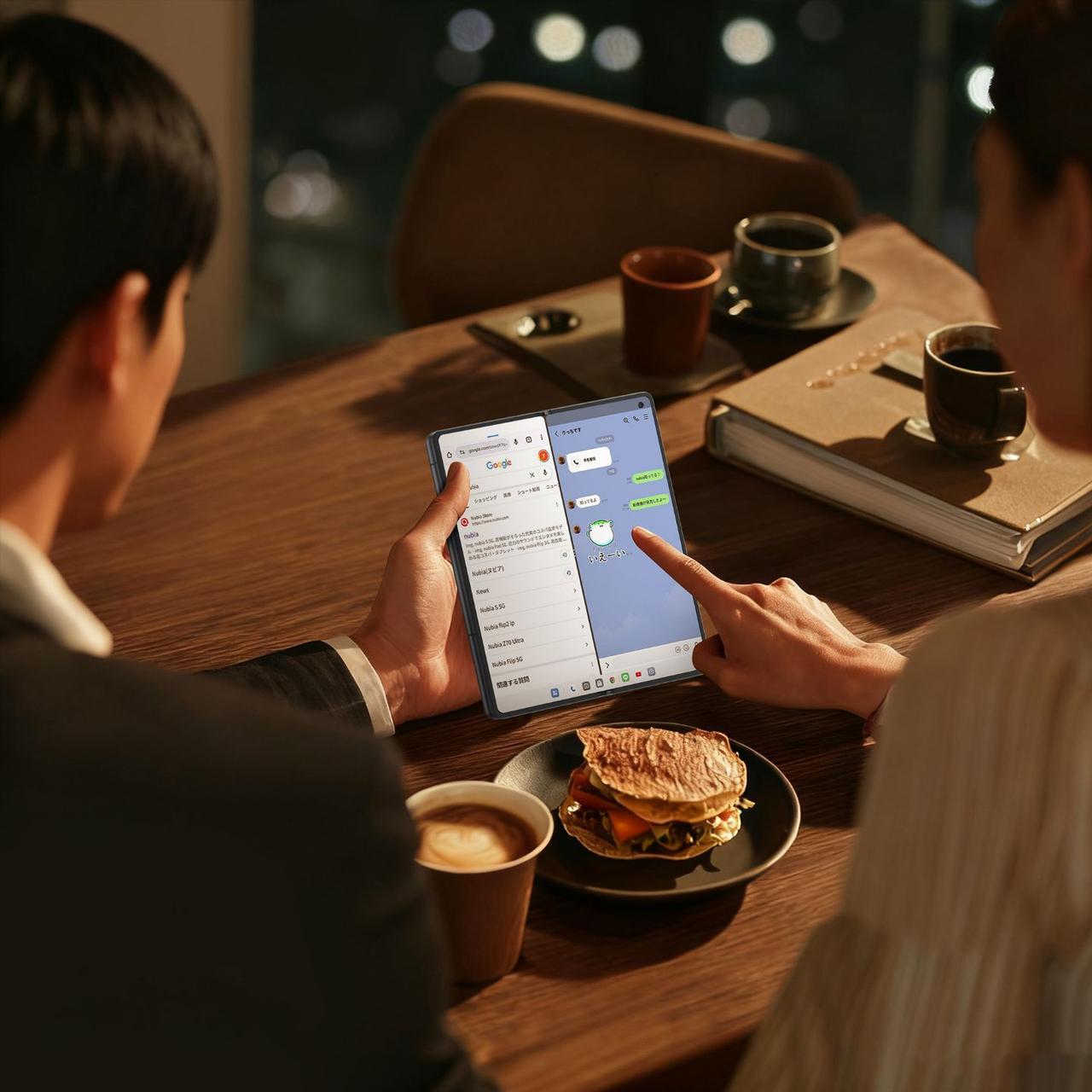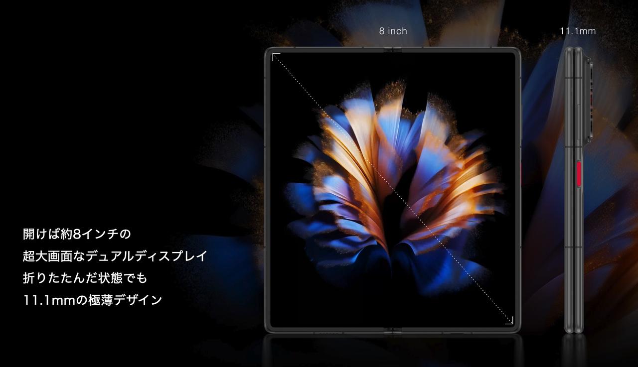 努比亚还出了一款大折,努比亚 Fold(A502ZT),明天正式发布,在日本抽签开售。这个不知道会不会有国行? - 芯片:骁龙 8 至尊版处理器,12GB LPDDR5X 内存,256GB UFS 闪存; - 屏幕:8 英寸 2800×2200 OLED 柔性屏,120Hz 刷新率,LTPS,支持 2160Hz 高频 PWM 调光;6.5 英寸 2784×1172 OLED 外屏; - 相机:外屏前置 20MP,内屏前置 20MP,后置 50MP 主摄(OIS)+ 50MP 超广角 + 5MP 微距三摄; - 续航:6560mAh 电池,55W 快充,70 分钟充电 100%; - 其他:折叠厚 11.1mm,重 187g,仅黑色配色,铝合金中框,支持 IP54 防尘防水、NFC、Wi-Fi 7、蓝牙 6.0、侧边指纹识别,日版支持 eSIM。