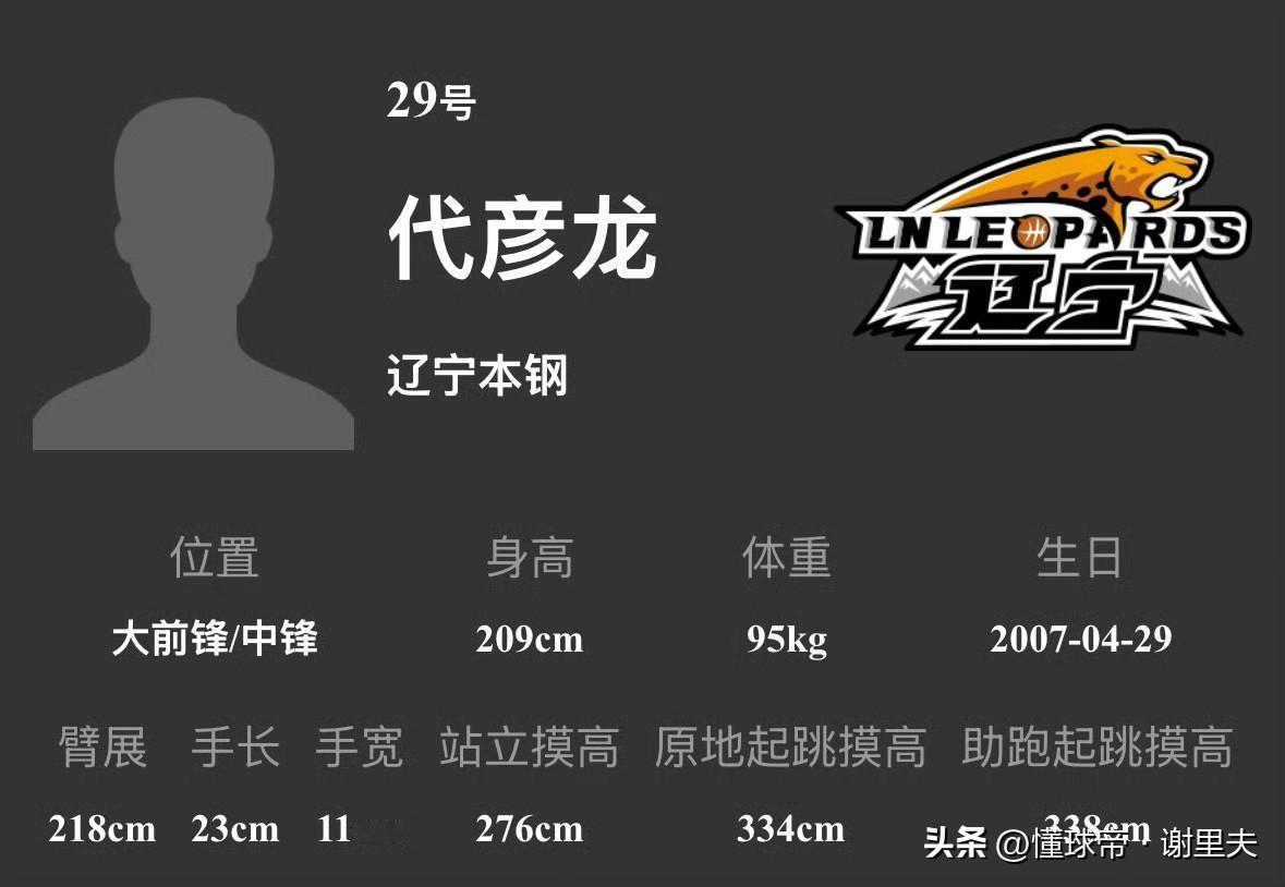 辽宁男篮新赛季6名新人体测数据出炉,由姜宇星领衔,最有天赋当属有“小周琦”之称的18岁代彦龙,身高209cm,臂展218cm,体重95kg,18岁的年纪还会继续拔高,预测身高211-213cm,臂展222-225cm,对比周琦216cm身高,臂展234cm的确有差距,毕竟周琦当年在nba臂展排前几位。辽宁队一口气提拔五位球员决心换血
