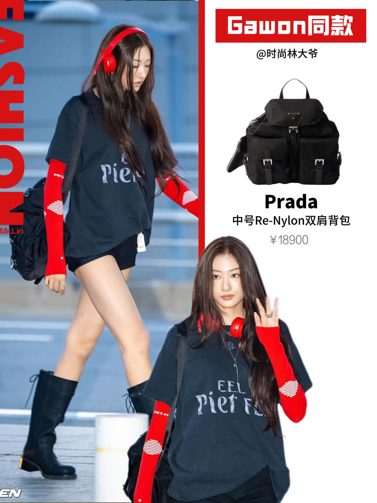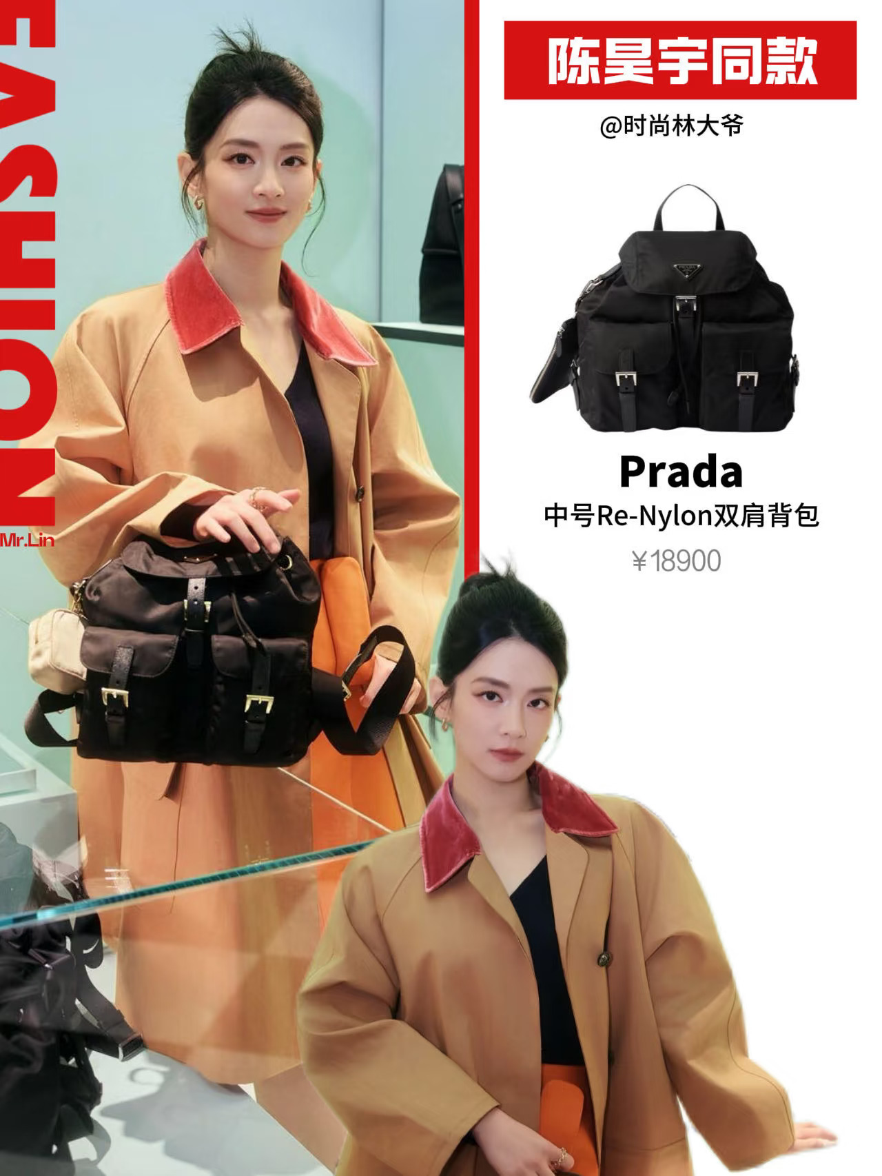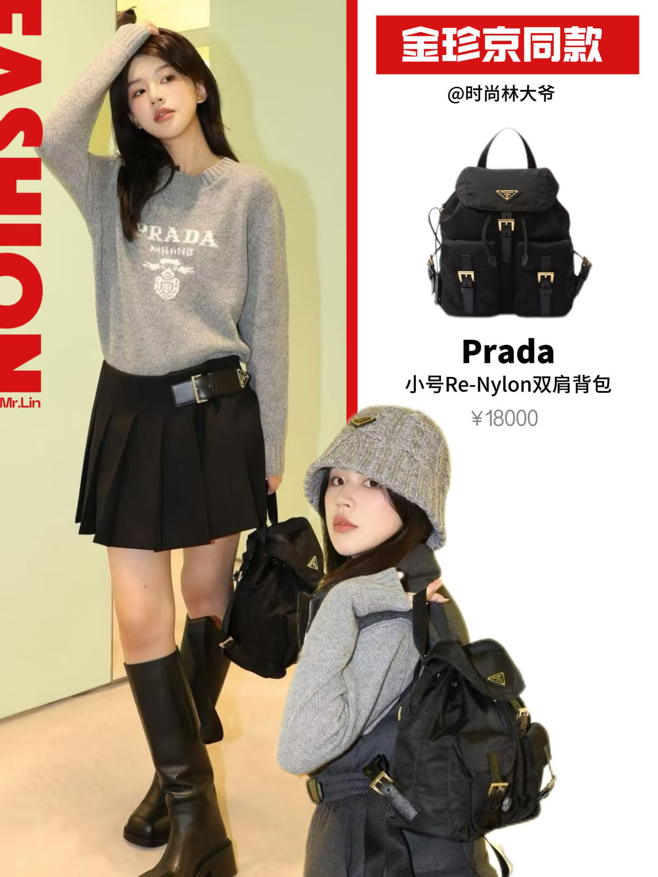 #明星同款#明星私服#金珍京#Gawon#关晓彤#陈昊宇#Prada #Prada再生尼龙 #Prada双肩包#秀出你的双肩包