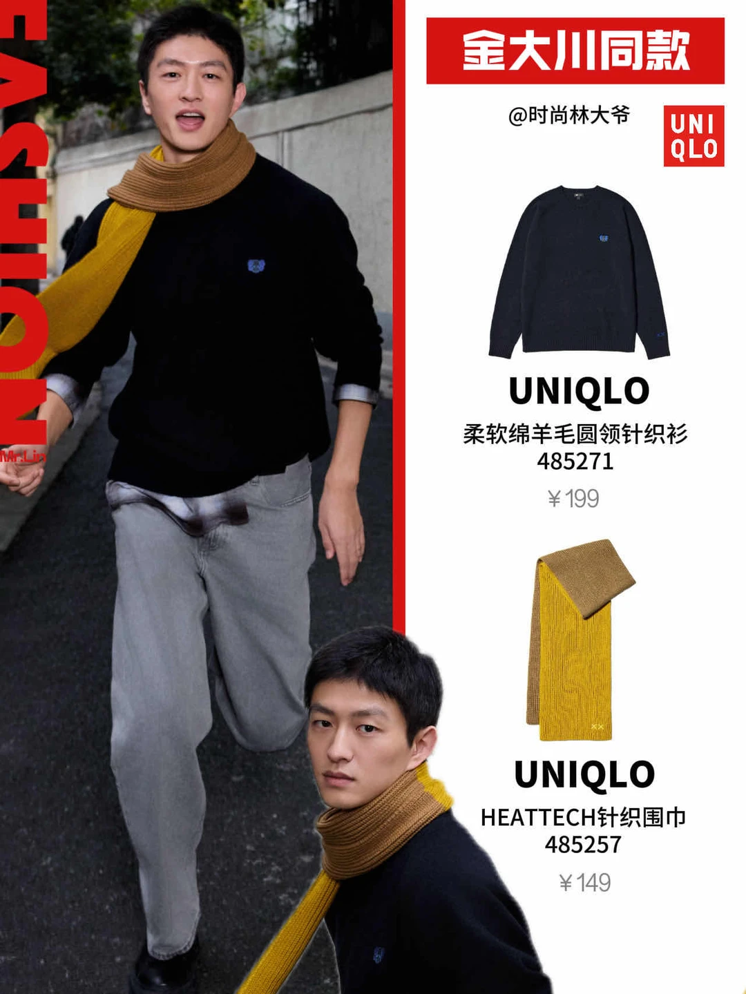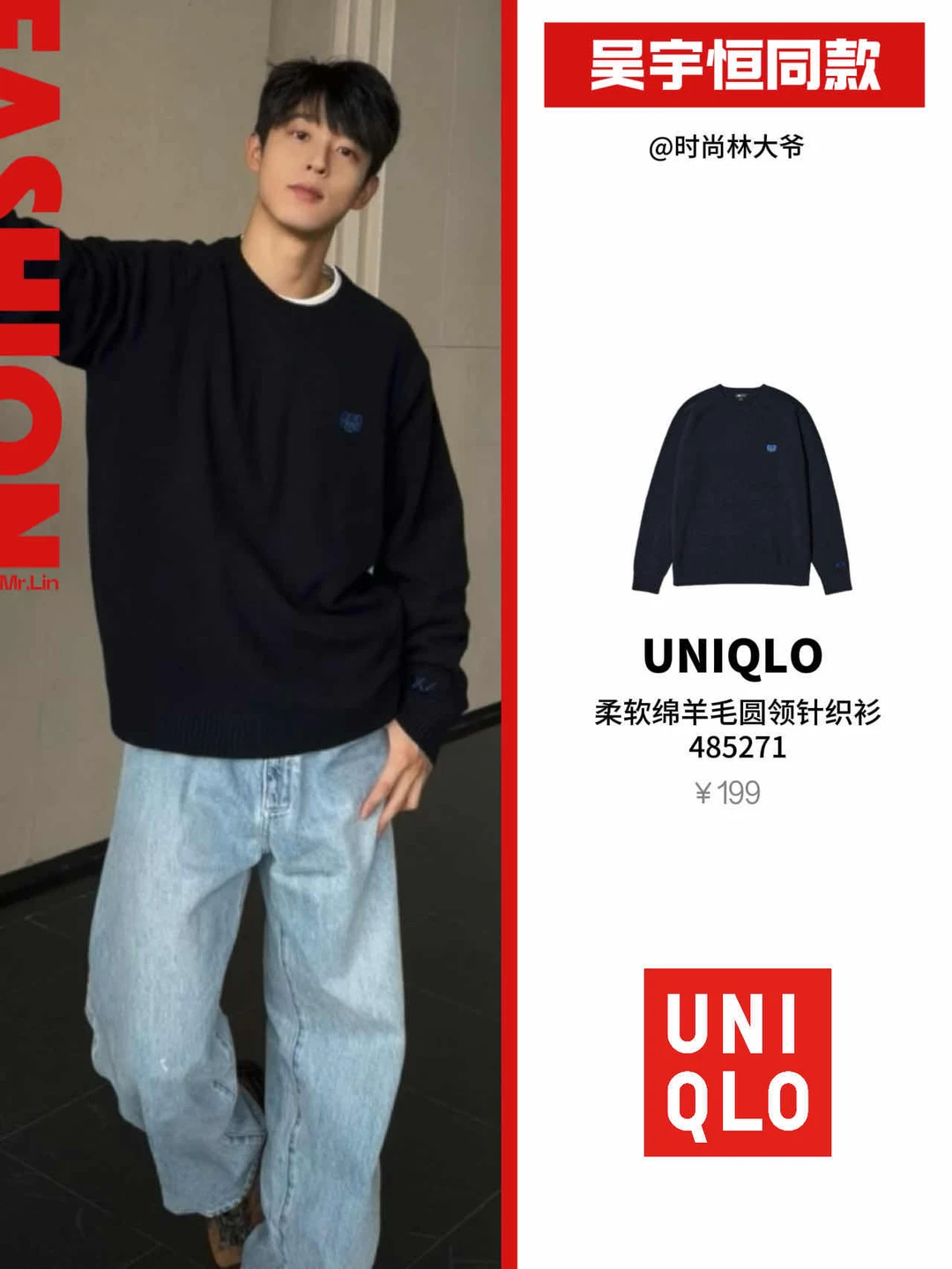 吴宇恒黑针织极简风,帅的毫不费力~软的甜、硬的飒,各个都精准踩在点上,优衣库这波艺术感+保暖度直接双杀✨
