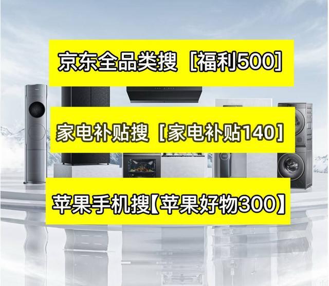 家电家具国补:京东搜[家电补贴140],12类家电可用,最高减2000元,收货/领券地需一致,一级能效补贴更高。