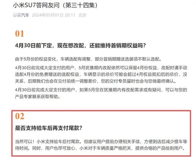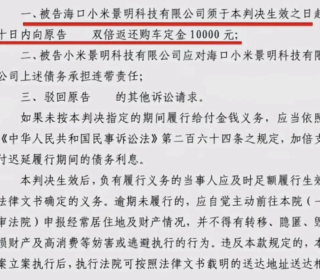 小米汽车全国首例败诉!“先付款后验车”争议落幕,行业规则迎重塑 一则一审判决,让正处销量增长快车道的小米汽车陷入舆论漩涡。海口市美兰区人民法院对全国首例小米汽车购车合同纠纷案的宣判,不仅判令小米相关公司双倍返还消费者定金,更撕开了新能源汽车行业预售模式的核心矛盾,这场看似普通的维权案,实则为行业敲响了合规警钟。 案件的来龙去脉清晰明了。2024年7月,消费者李平(化名)通过小米汽车APP订购了一辆售价31.89万元的SU7 Max,支付5000元定金后与门店协商约定:订单有效期360日,可随时申请排产,交付周期重新计算。然而同年12月,小米海口公司突然要求其7日内支付全额尾款,否则取消订单且没收定金,这与此前小米官方“支持验车后付尾款”的宣传承诺严重相悖。在协商无果、投诉未果后,李平提起诉讼,最终法院认定小米相关格式条款无效,判决双倍返还定金1万元。 法院的判决依据直指核心症结。其一,涉案格式条款“收到尾款通知后7日内付款,逾期没收定金”,实质是在消费者未验车、未收车的情况下加重付款义务,限制了消费者的质量核验权,符合《消费者权益保护法》中格式条款无效的情形;其二,小米官方曾明确答复“支持验车后付尾款”,该宣传构成消费者订立合同的重要信赖基础,实际操作却背道而驰,违反诚实信用原则;其三,小米在未收到消费者排产通知的情况下,擅自生产并催收尾款,违反了双方补充约定,构成违约。 这起败诉案并非个例,而是行业乱象的集中爆发。随着小米汽车交付量提升,类似投诉自2025年11月起集中增长,涉及SU7系列及新款YU7 SUV,核心争议均围绕“付款与交付的履行顺序”。不少消费者反映,购车合同中关于尾款支付的表述模糊,仅注明“按门店通知支付”,未明确与验车、交付的先后关系,为纠纷埋下隐患。天眼查信息显示,负责小米汽车销售的小米景明科技有限公司,已涉及超过10起买卖合同纠纷,分布于上海、重庆、厦门等多地。 值得注意的是,此案的判决结果与小米汽车亮眼的业绩形成鲜明反差。2025年第三季度,小米汽车单季交付10.88万辆,前三季度累计交付超26万辆,智能电动车业务营收达283亿元,首次实现经营收益7亿元。但高速扩张背后,销售服务的合规性短板逐渐暴露,除了定金纠纷,小米SU7 Ultra还因4.2万元碳纤维机盖的宣传功能与实际不符陷入虚假宣传争议,相关案件已完成开庭质证。 对于新能源汽车行业而言,这起判决的影响远不止于小米一家。当前行业普遍采用“先订后产”模式,但部分车企存在数据泡沫、履约失衡等乱象:将可退“小订”包装成实单宣传,或通过模糊合同条款转移交易风险。传统车企长期遵循的“验车—付款—交付”流程,本质是保障交易公平的市场惯例,而小米汽车的“先付款后验车”尝试,显然突破了消费者权益保护的底线。 这场败诉对小米汽车而言,绝非“一切都结束了”,而是合规整改的开始。判决不仅为消费者维权提供了司法参考,更明确了行业规则:无论销售模式如何创新,都不能以牺牲消费者权益为代价。对于其他车企而言,此案也是一次深刻警示,需重新审视合同条款的合规性,将宣传承诺转化为实际履约行为,平衡规模扩张与服务质量。 未来,随着监管趋严与消费者维权意识提升,新能源汽车行业的竞争将从单纯的技术、价格比拼,转向合规性与服务质量的较量。小米汽车能否借此机会完善销售流程、补齐合规短板,直接影响其品牌口碑与长期发展。而这场判决的更大意义在于,推动行业回归“公平交易”的本质,让“验车后付款”这样的基本权益得到切实保障,这才是行业健康发展的核心根基。