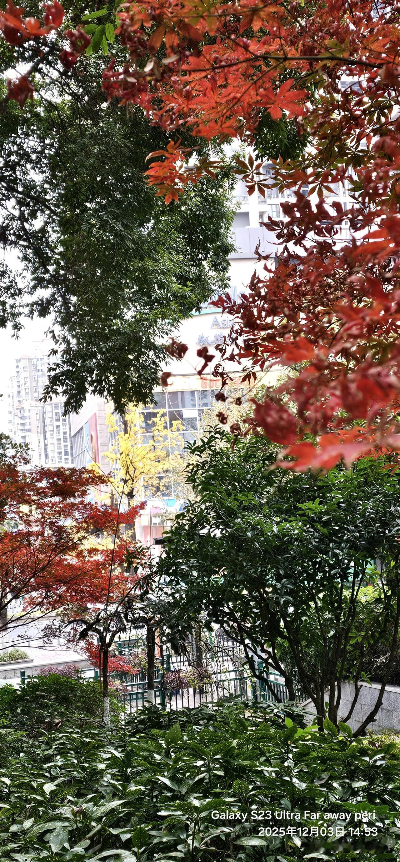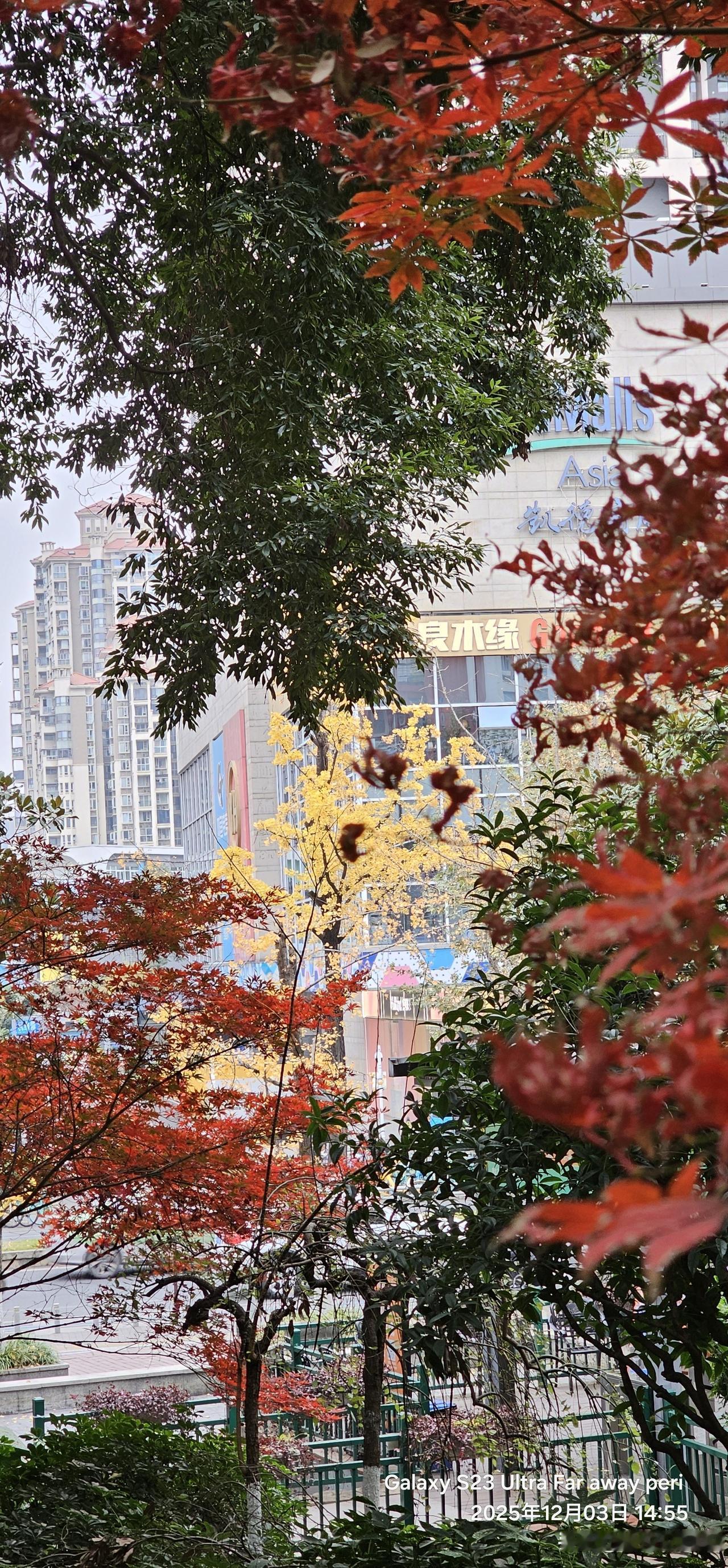 初冬时刻,红叶、绿树、黄叶交相辉映,美不胜收!来吧!成都欢迎你! 成都初冬的晨雾,天地被一层薄纱轻覆,是夜与昼的私语,是寒霜未至前的温柔序章。它从万科魅力之城园里茂密的丛林中悄然升起,如烟似霭,将远处的楼宇、近处的银杏树、红叶枫树、黄栌、乌桕,都裹进一片朦胧的乳白里。树木的轮廓在雾中晕染,枝桠交错成淡墨的剪影,仿佛一幅未干的水墨画,街边的银杏树成了最慷慨的画家,用金黄的叶片铺就一地锦绣,行人踩在上面,沙沙声里藏着初冬的私语。 成都的初冬,不争不抢,却自有它的温柔。它藏在银杏叶落的沙沙声里,躲在茶馆的氤氲茶香中,更在街头巷尾的烟火气里,让人在繁华与静谧间,找到一份安放灵魂的归处。
