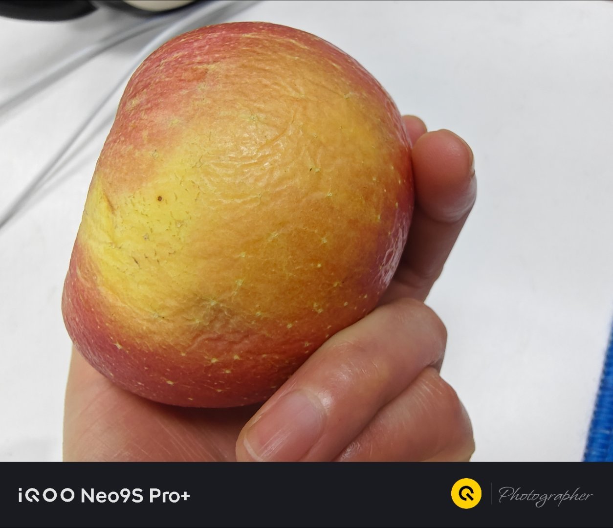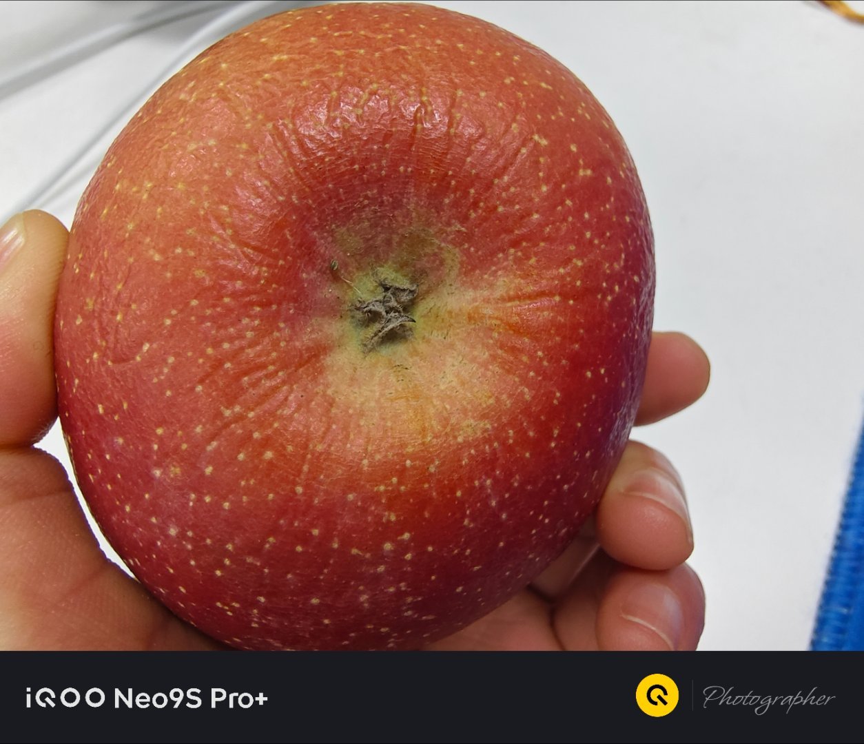 一个蔫了吧唧苹果的正面、侧面、上面、底面