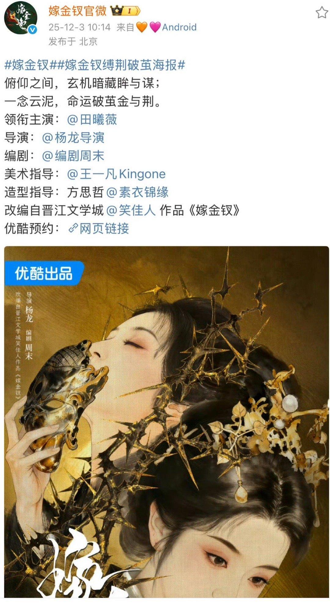 田曦薇嫁金钗单独官宣,一番大女主的排面拉满了,小田稳步上升中。