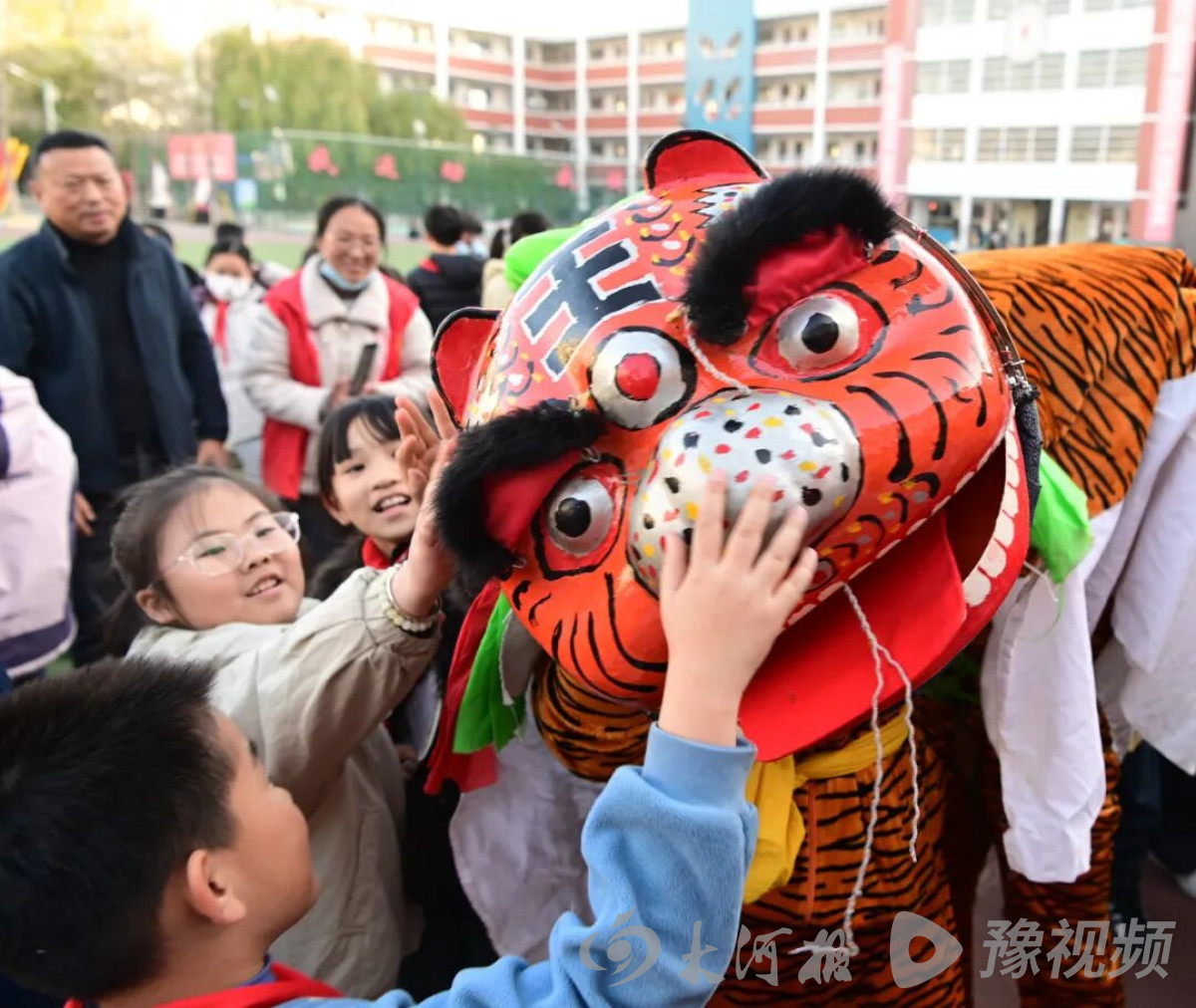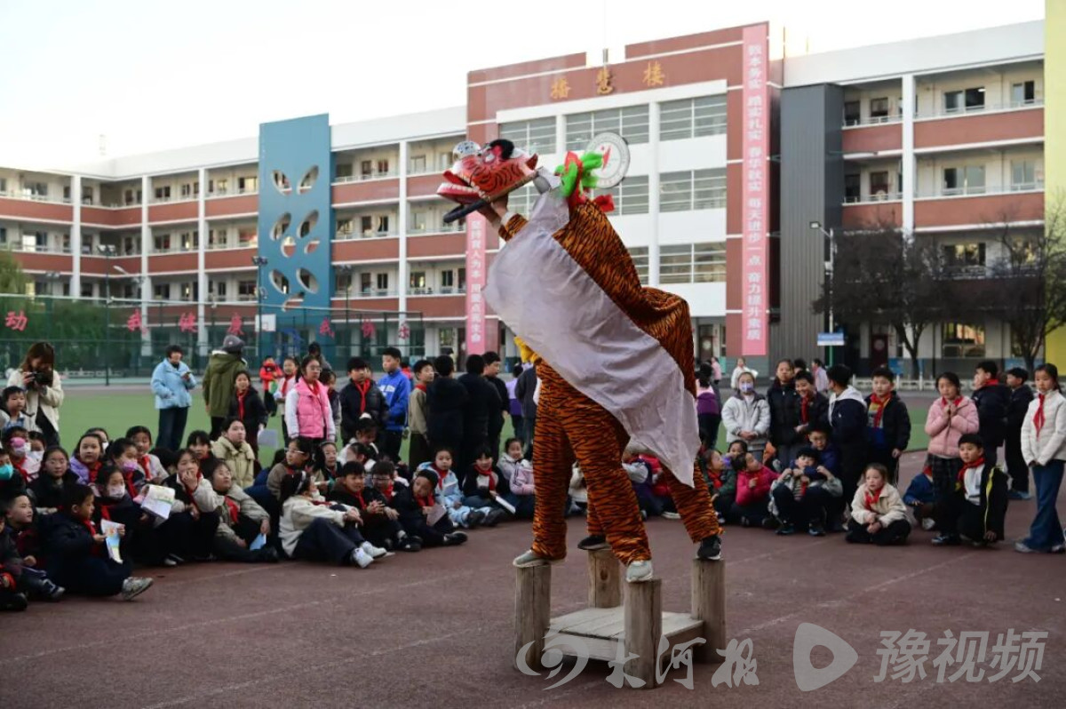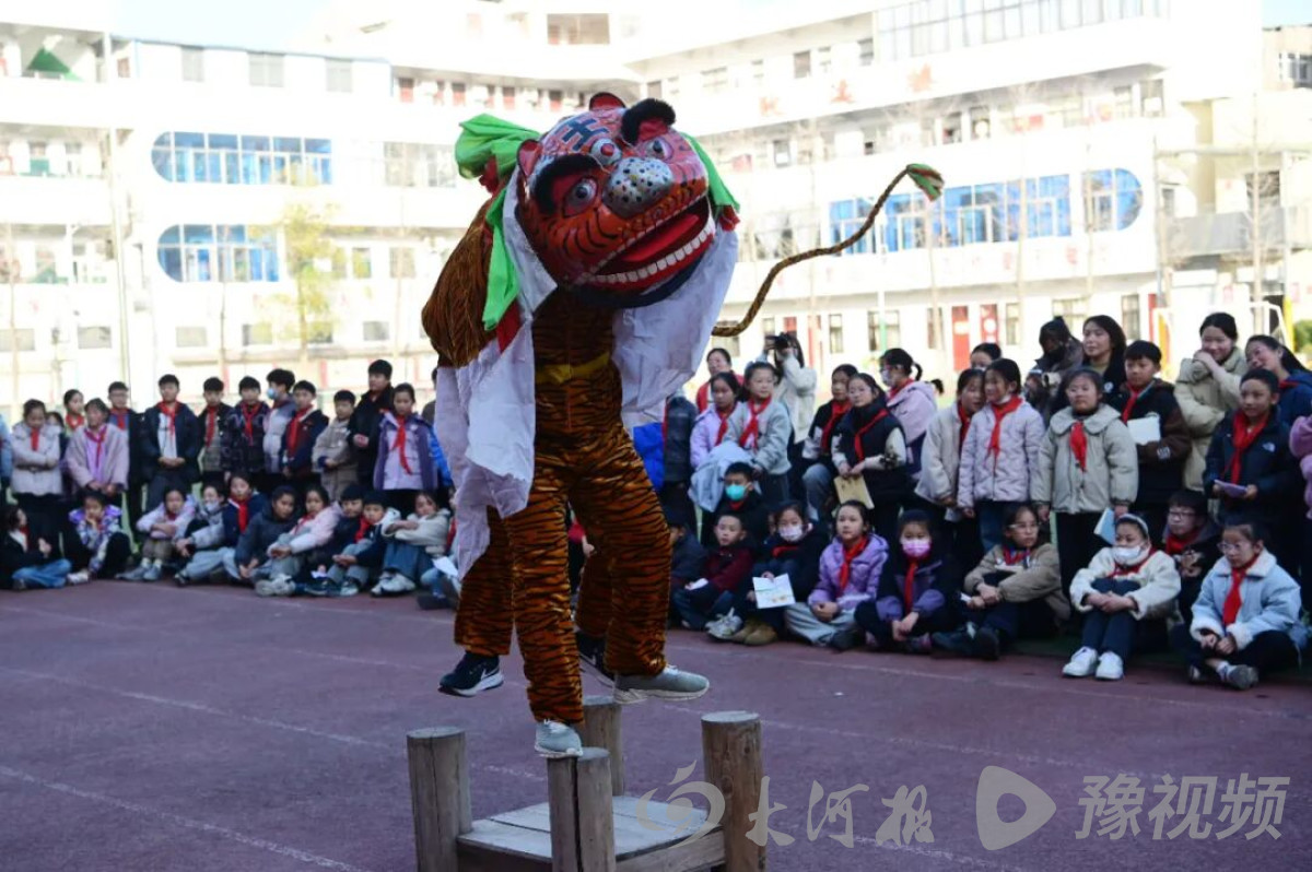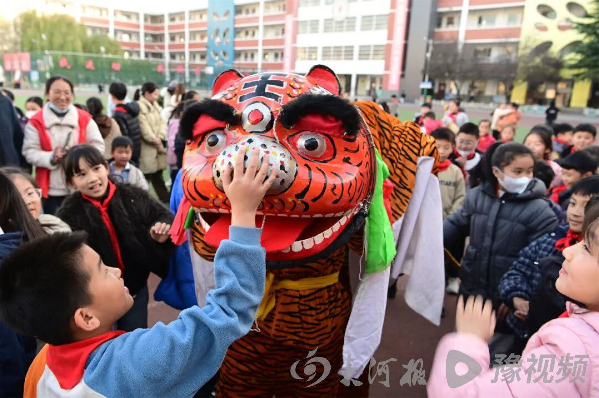 “快看!大老虎朝我眨眼睛啦!”11月28日,在河南省沁阳市实验小学操场上,欢呼声此起彼伏。当国家级非物质文化遗产“言状老虎”摇头摆尾地走向学生,学生杨宛潼忍不住伸手触碰那威风凛凛的“虎身”,兴奋得脸颊通红。