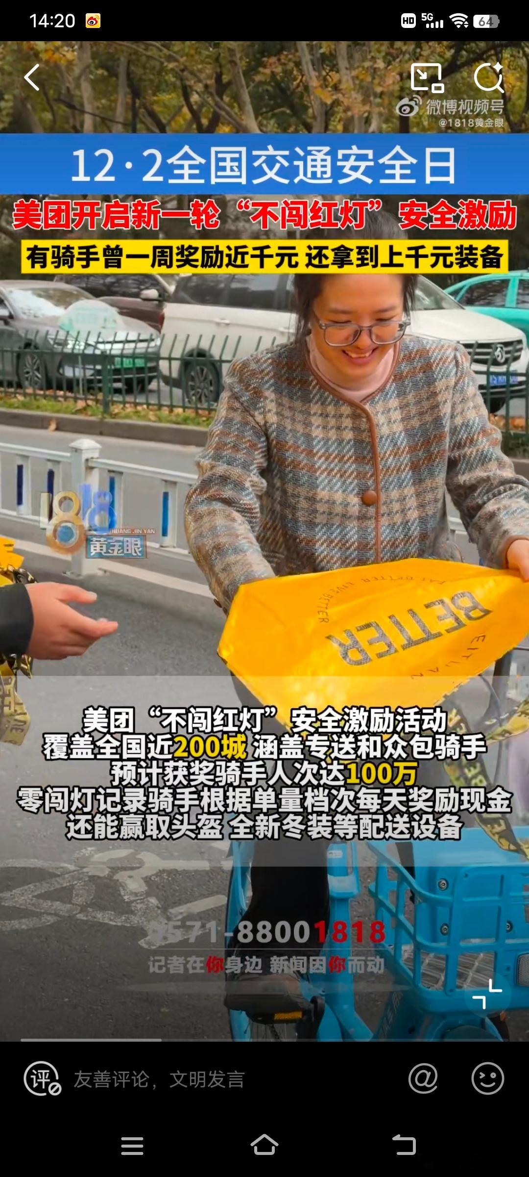 7天的自律,换来了850元的犒赏,杭州外卖小哥把安全骑成了“摇钱树”。全国交通安全日启动的新活动,让“注意安全”不再是空话,而是能变现的智慧——每一次等灯的耐心,都在为钱包添砖加瓦,这样的激励,暖心又鼓劲。杭州外卖小哥7天不闯红灯拿到850元奖金