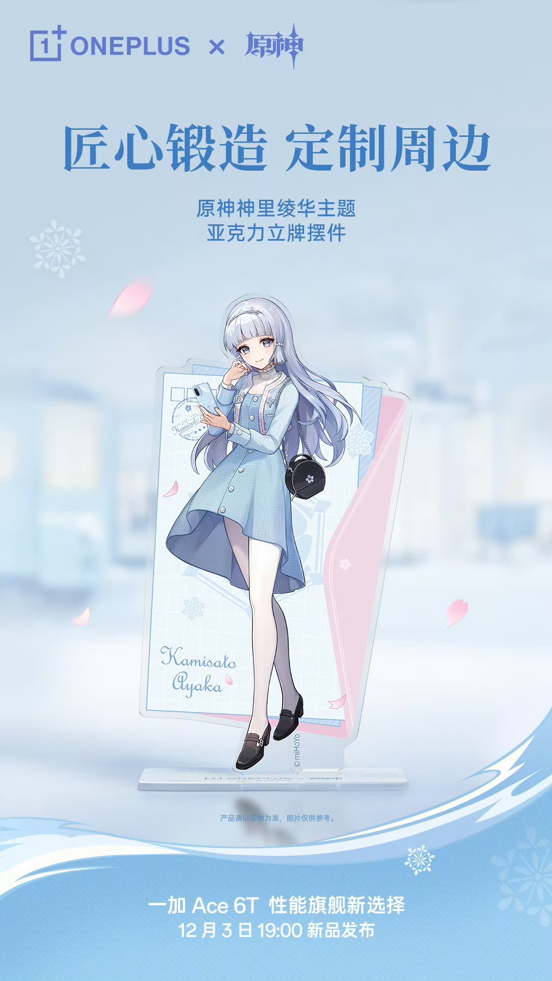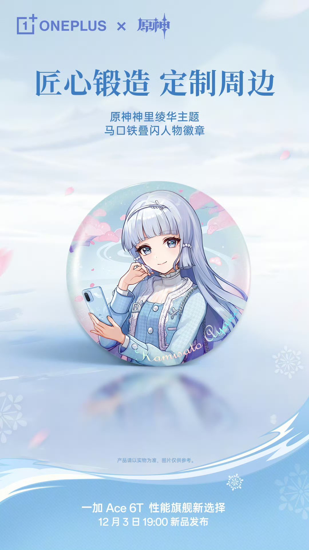 【一加 Ace 6T 原神神里绫华定制机专属配件公开,含专武定制主题卡针、100W 超级闪充充电器等】公布一加 Ace 6T 原神神里绫华定制机后,一加手机官方还揭晓了该款联名手机的旅行手提箱式设计礼盒的外观、专属珍藏配件内容等。据介绍,一加 Ace 6T 原神神里绫华定制机采用「雪霁蓝」限定配色,同时背板印有「白鹭公主」专属纹样。该机的专属珍藏礼盒采用旅行手提箱式设计,专属珍藏配件包括:神里绫华专属限定色 100W 超级闪充充电器、神里绫华专属冰蓝氛围定制手机保护壳(替换卡片设计)、角色专武「雾切之回光」定制主题卡针等。一加Ace6T原神神里绫华定制机 一加ace6t新品发布 一加ace6t