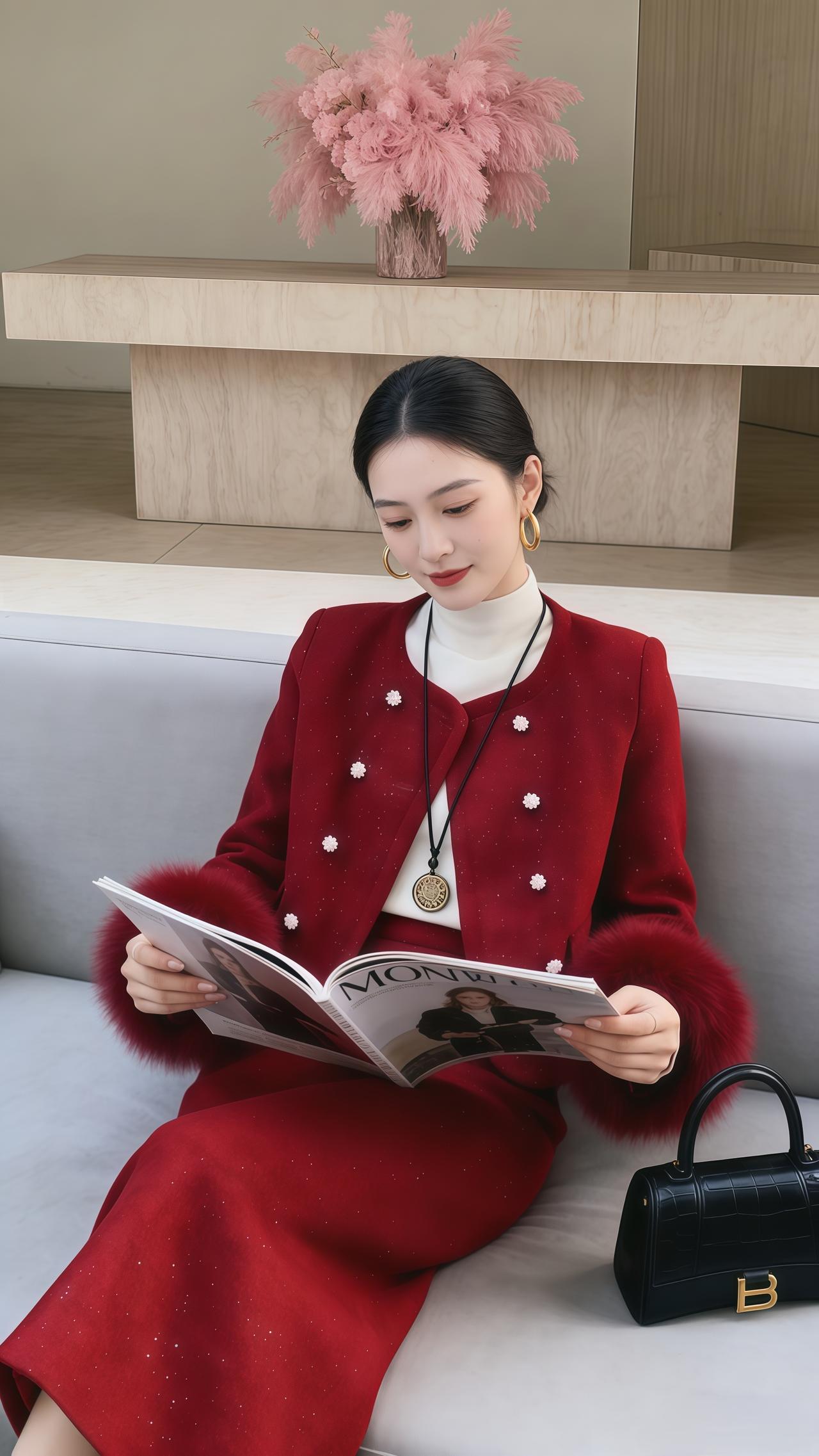 穿搭 高级穿搭 红色系 新年穿搭 小香风套装