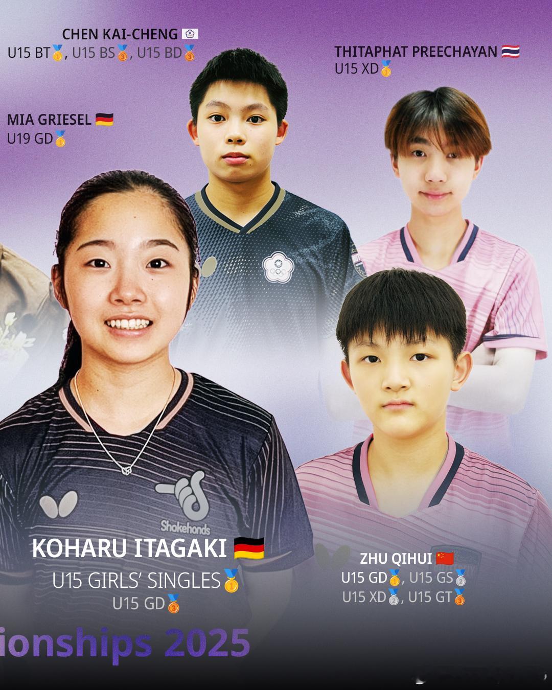 蝴蝶:恭喜蝴蝶大家庭的年轻球员们,在 2025 年世界乒乓球青少年锦标赛中收获佳绩!蝴蝶有幸能够与来自更多国家与地区的青年选手们,一同见证成长与突破。多彩而蓬勃的乒乓赛场,也让这项运动的未来更加令人期待。