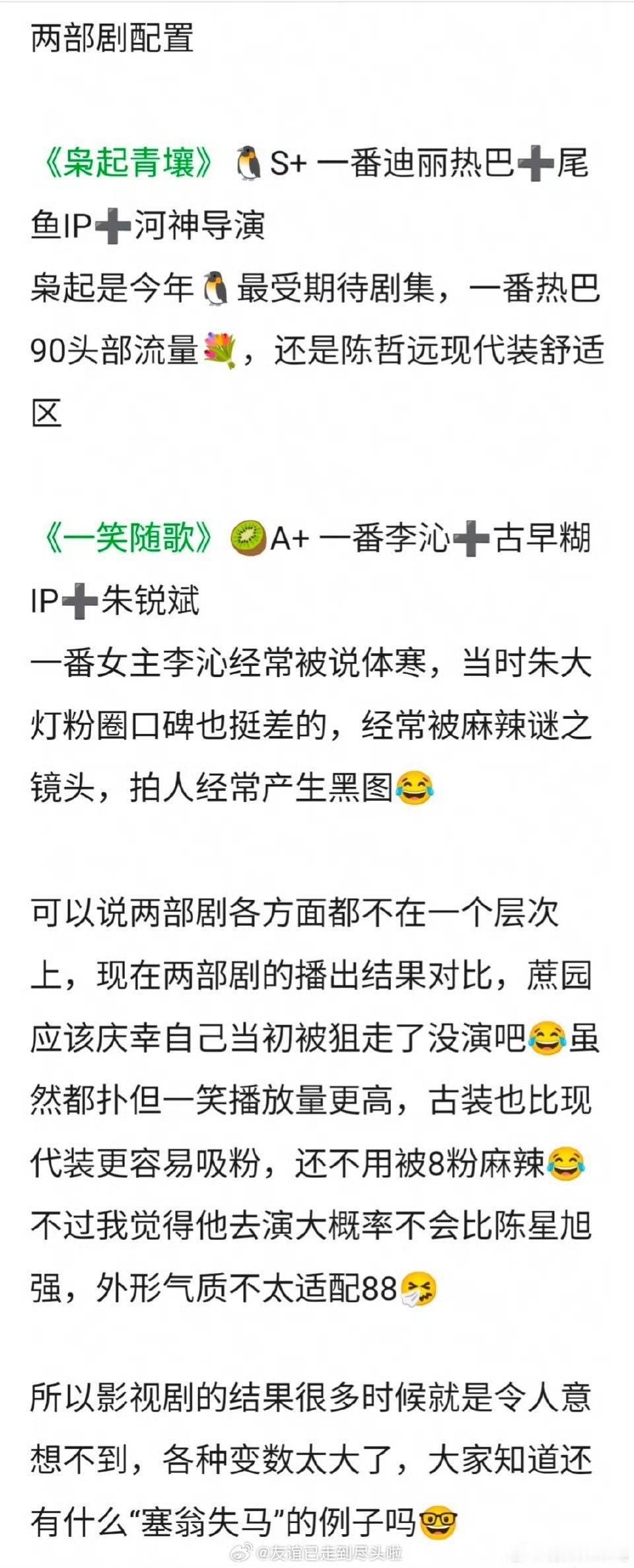 当年怎么看《枭起青壤》都比《一笑随歌》有火相,没想到现在《一笑随歌》播得比《枭起青壤》好多了,陈哲远还挺会挑本子的 一笑随歌 枭起青壤 枭起青壤口碑