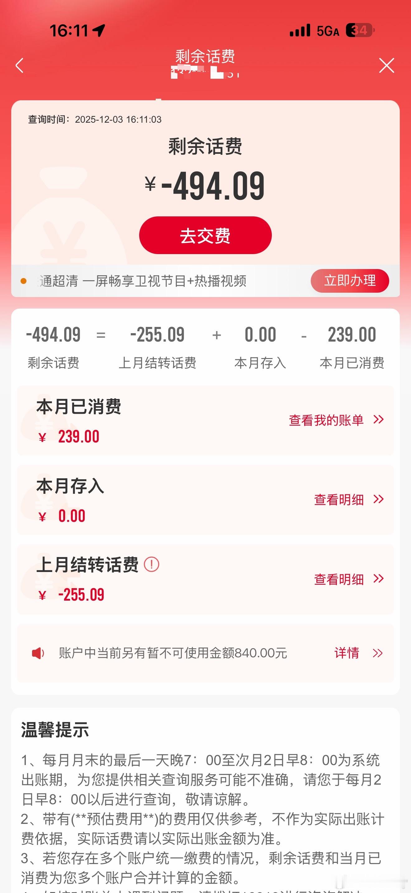 我上个月超了100多G1G一块钱 我忘记买月底加油包了这个月欠费快500我国每人