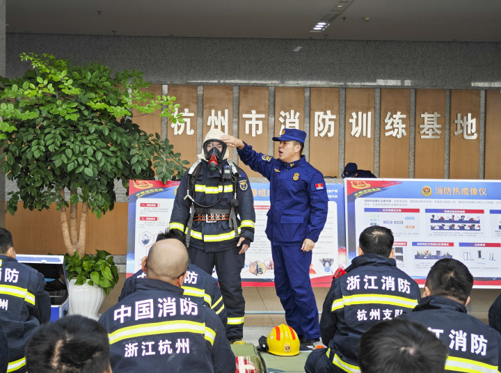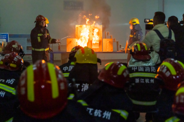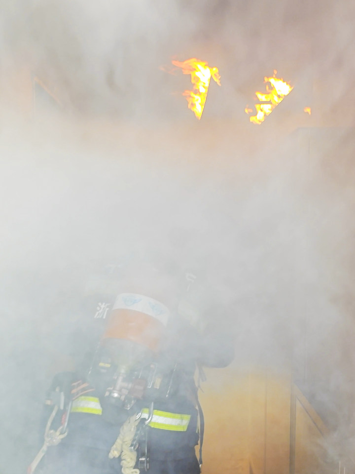 今天上午,杭州消防开展建筑火灾中真烟真火模拟场景训练,橙柿互动两位记者分别佩戴专业救援设备,体验了真烟真火逃生场景。