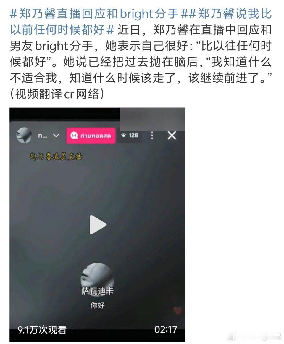 郑乃馨直播回应和bright分手这下好了两个人的事业都一团糟我很想知道还能怎么前进
