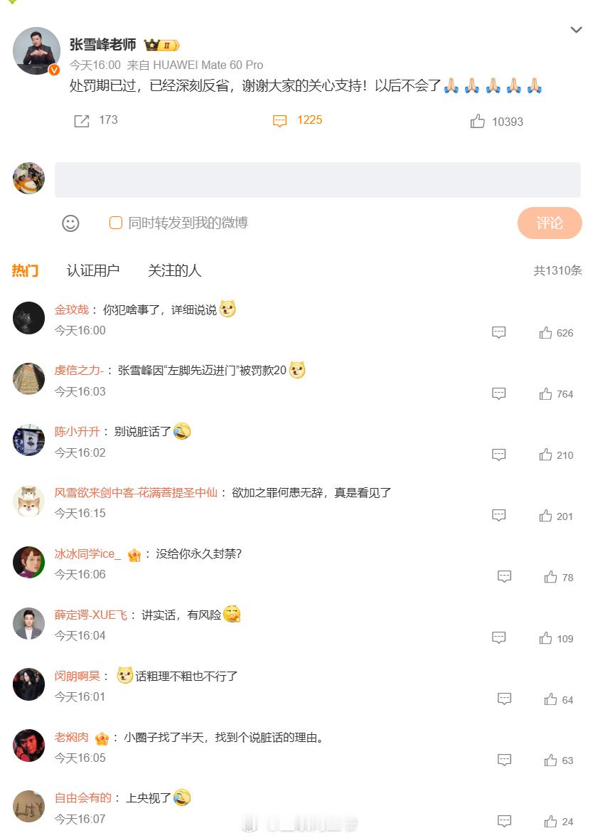 张雪峰称已经深刻反省 张雪峰抖音账号30天掉粉近13万阑夕和张雪峰双双回应,深刻反思,认真学习,再也不会了~ 作为大V真的要谨言慎行,本身都是有影响力的人物,不能随口出,影响的是一片人啊! 阑夕宣介境外色情被禁言