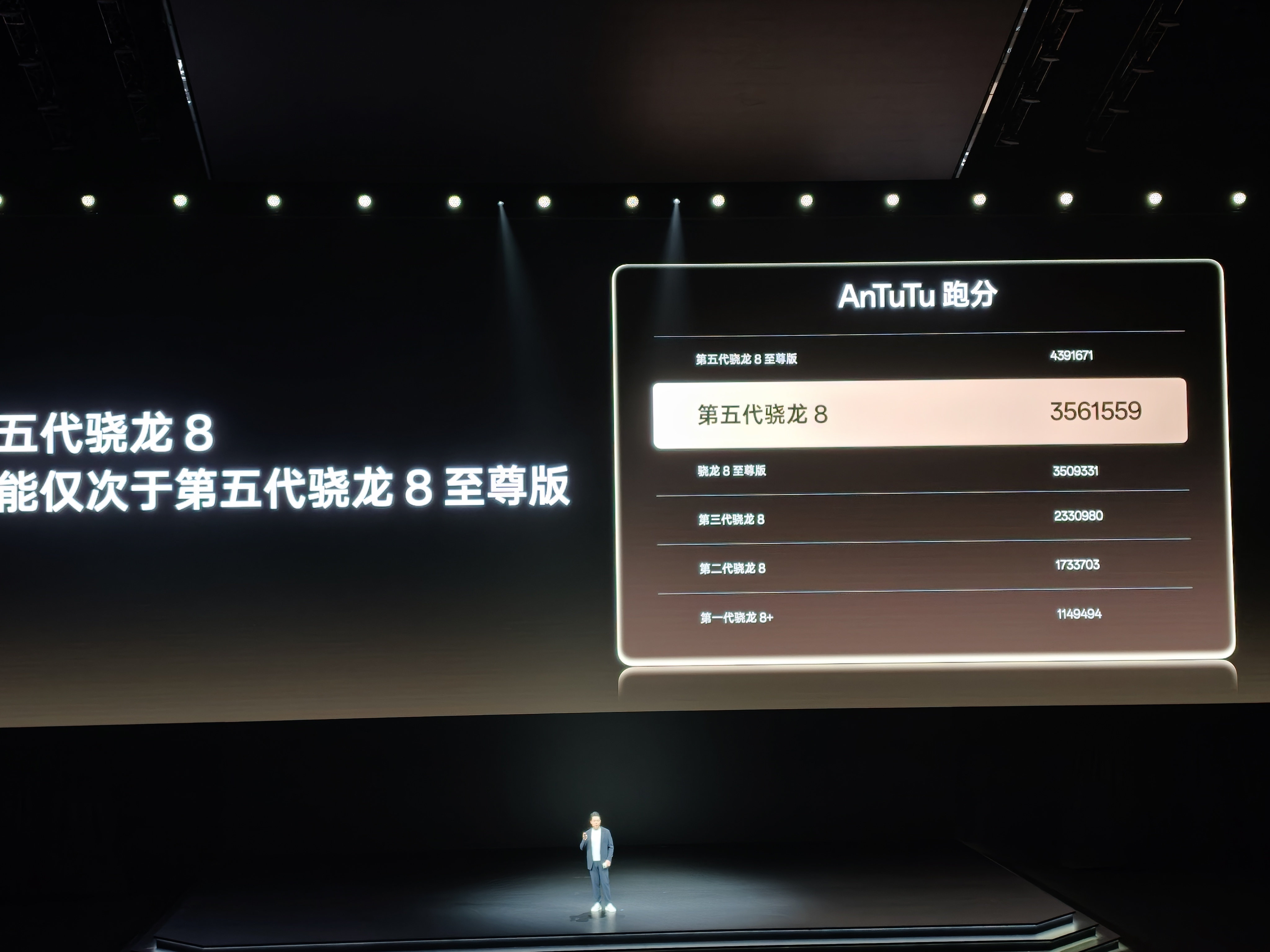 一加Ace6T 上搭载的这颗第五代骁龙 8 安兔兔跑分(官方)3561559 ,