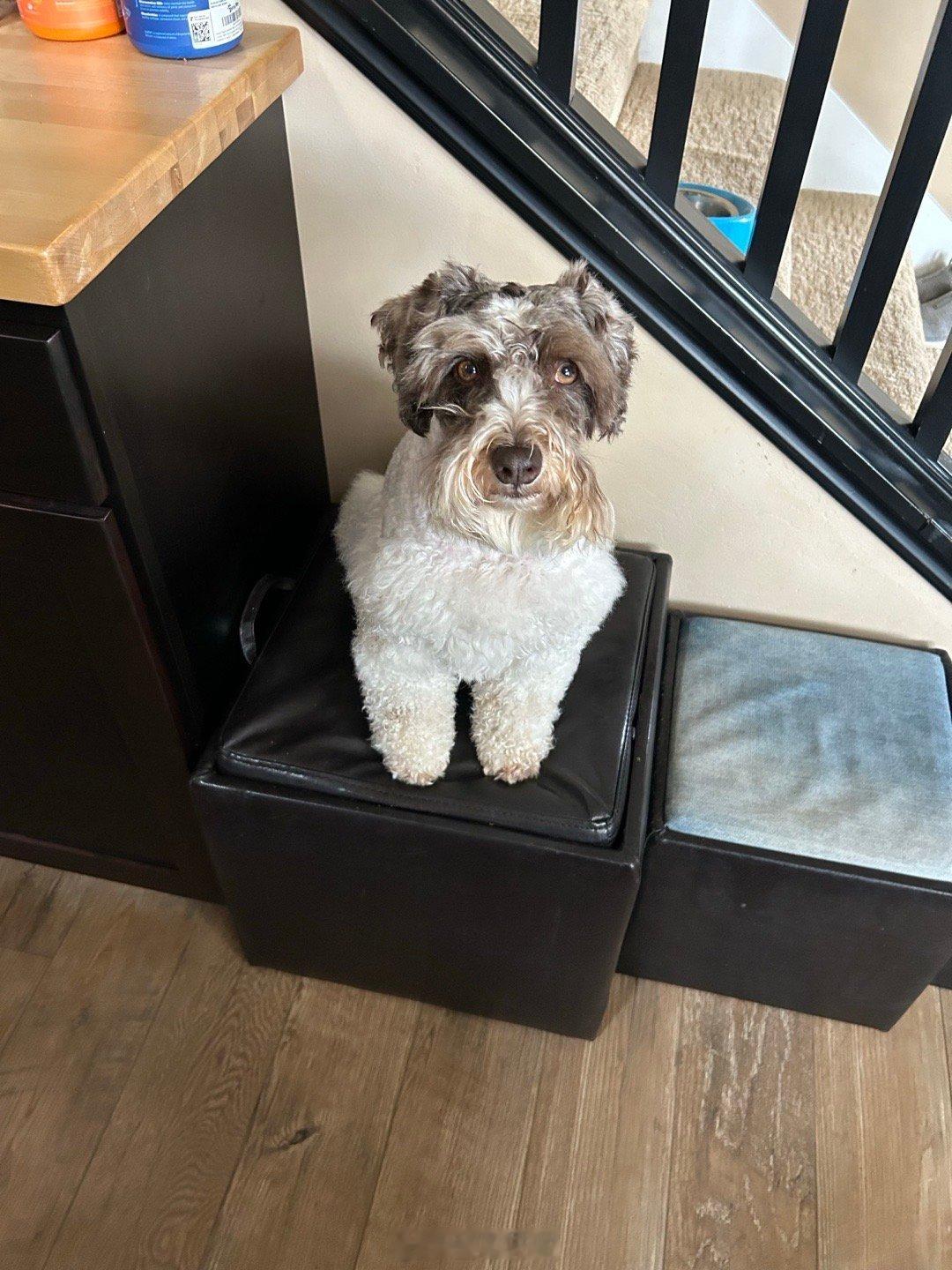 吉哥的原生家庭grandma喜欢训练狗狗,狗狗跳上凳子就是表示他们要想吃点狗零食