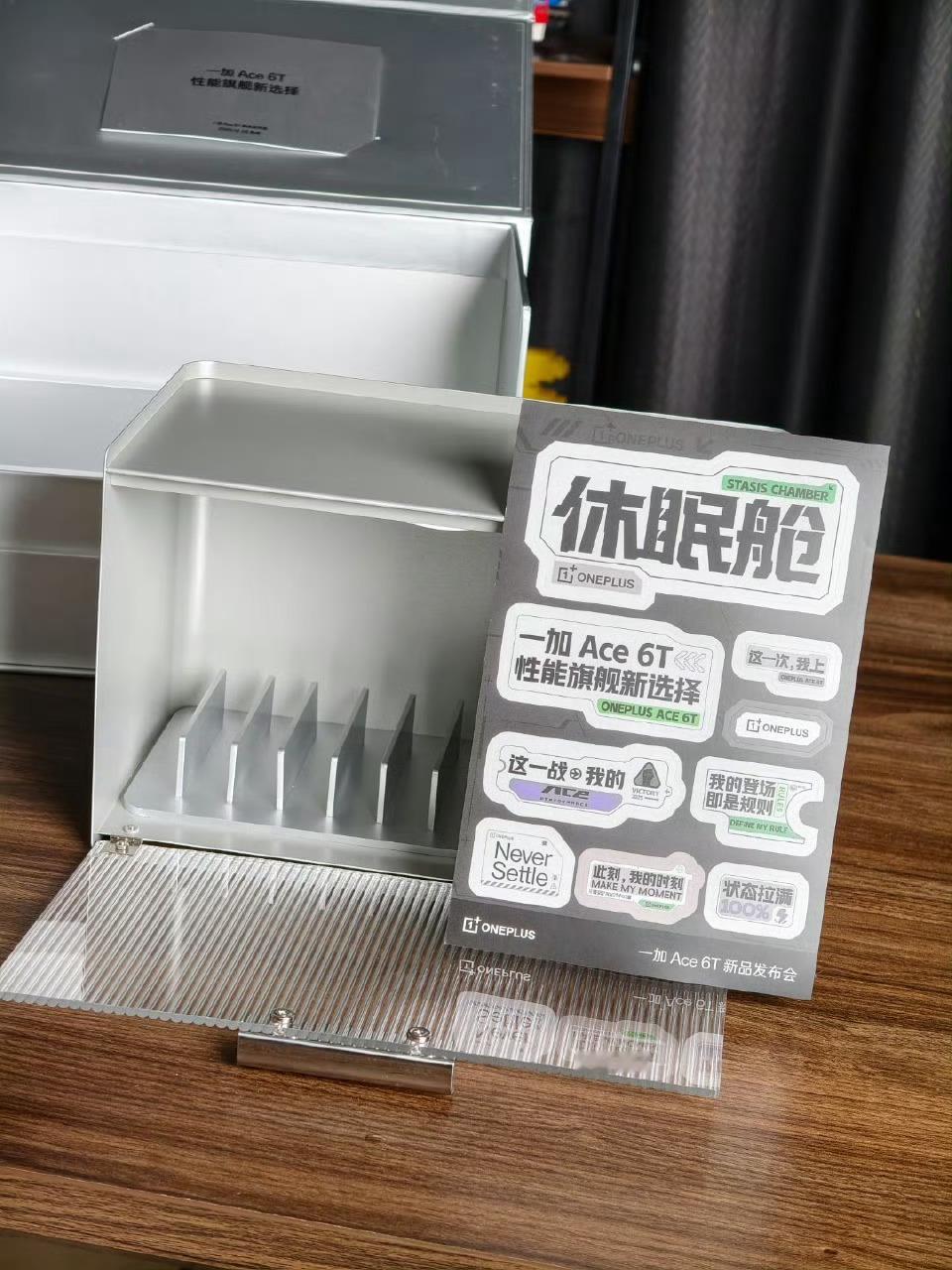 一加Ace 6T邀请函来了~ 包装里藏着“休眠舱”收纳盒,亚克力瓦楞盖+温补光灯
