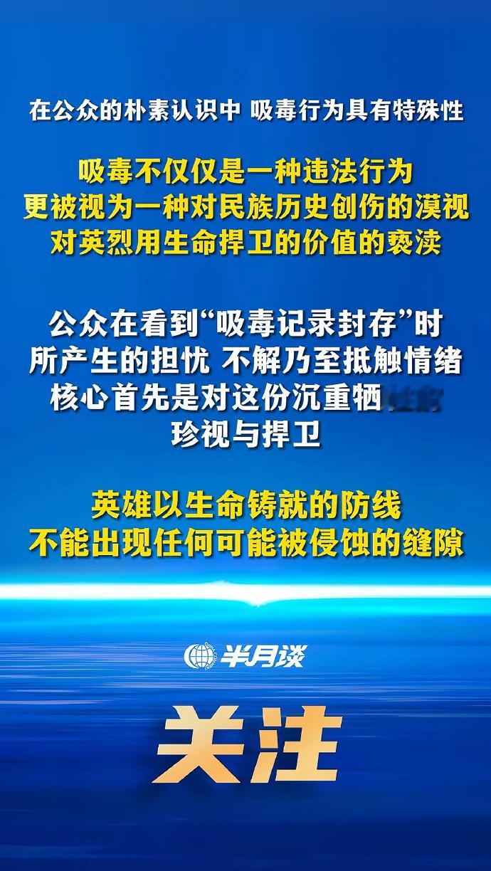 终于有官方媒体出来为老百姓说话了。吸毒封存,和绝大多数公众情感意愿相悖,北大和武大教授出来走两步?劳女士如何评价半月谈的观点?