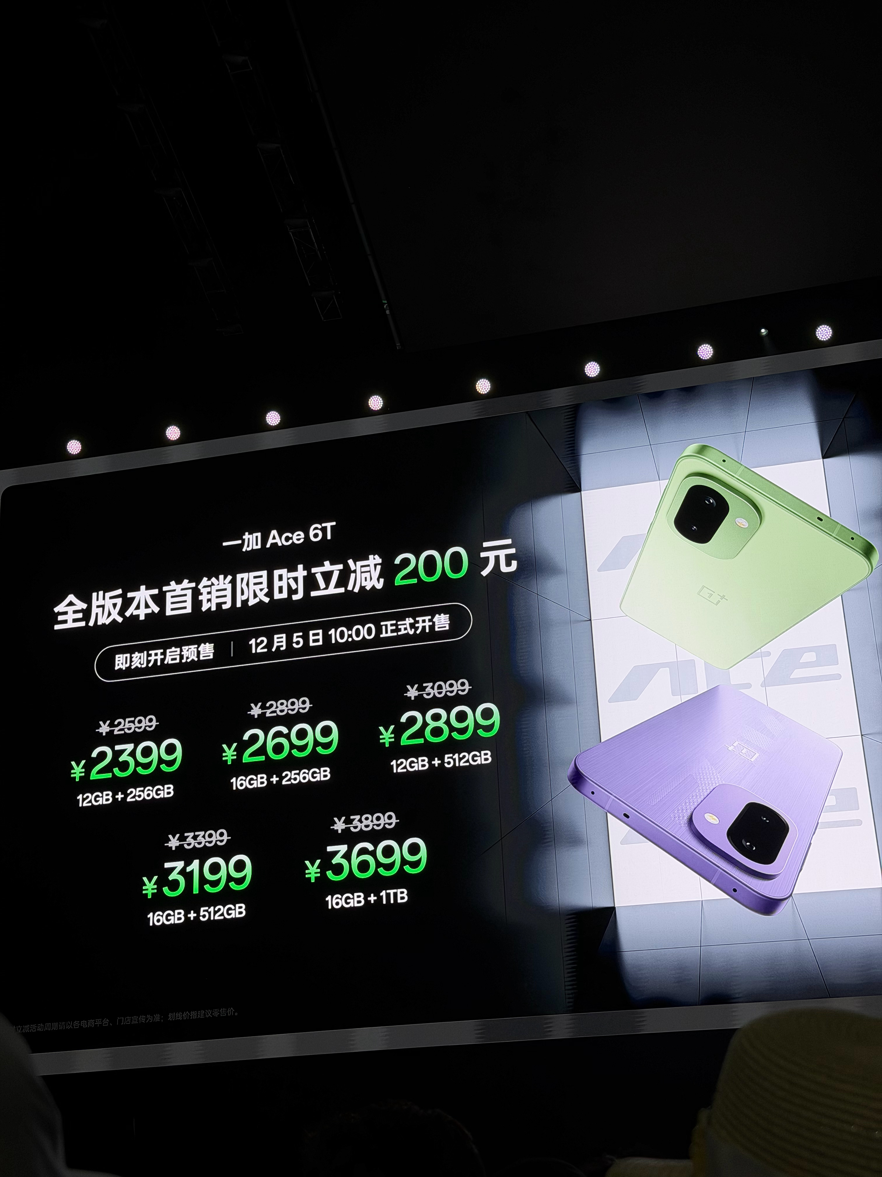 一加 Ace6T 仅 2399 起,搭载第五代高通骁龙 8 处理器
