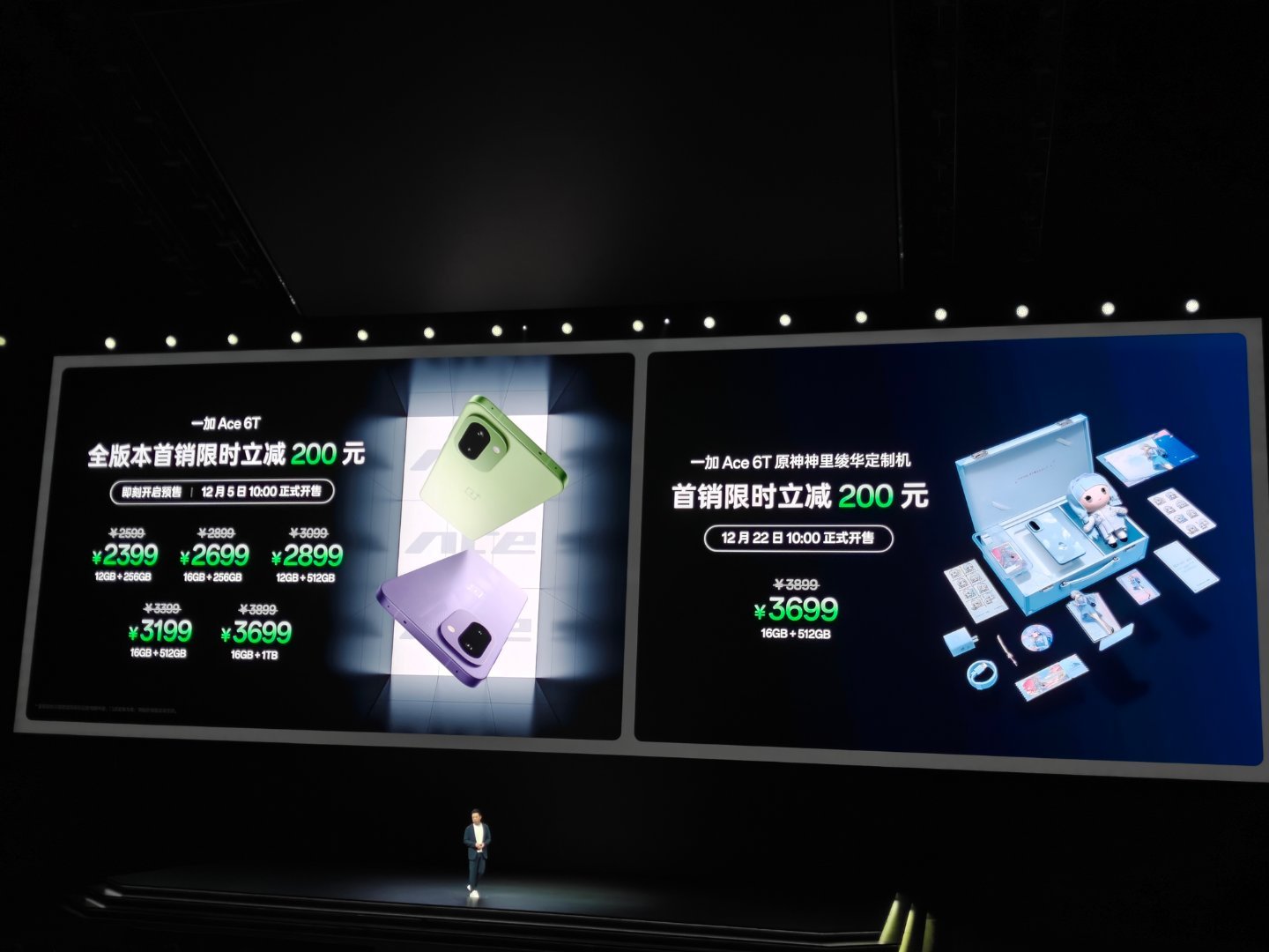 一加Ace6T 价格来了,到手价2399元起。还有原神神里绫华定制机,16GB+