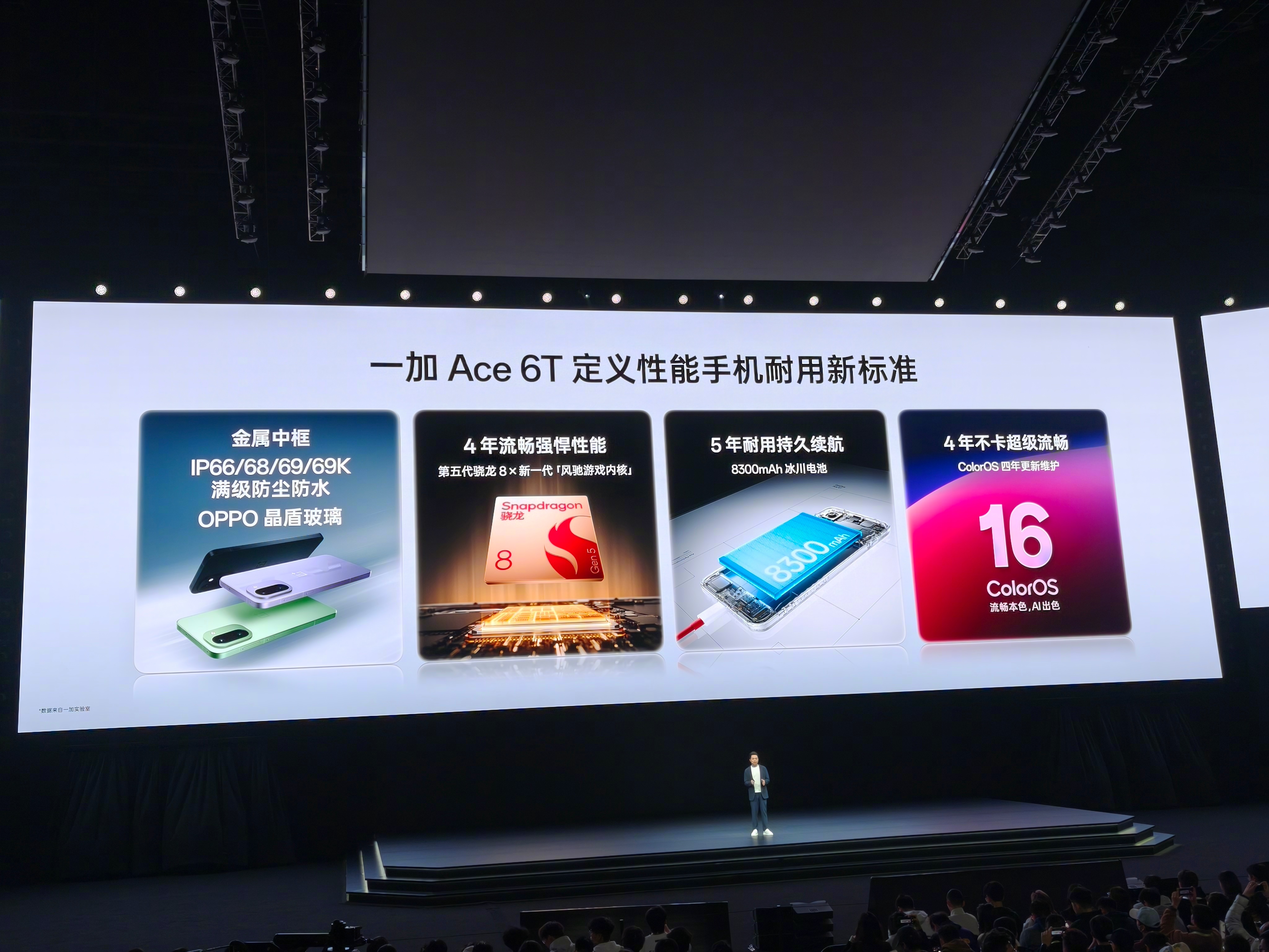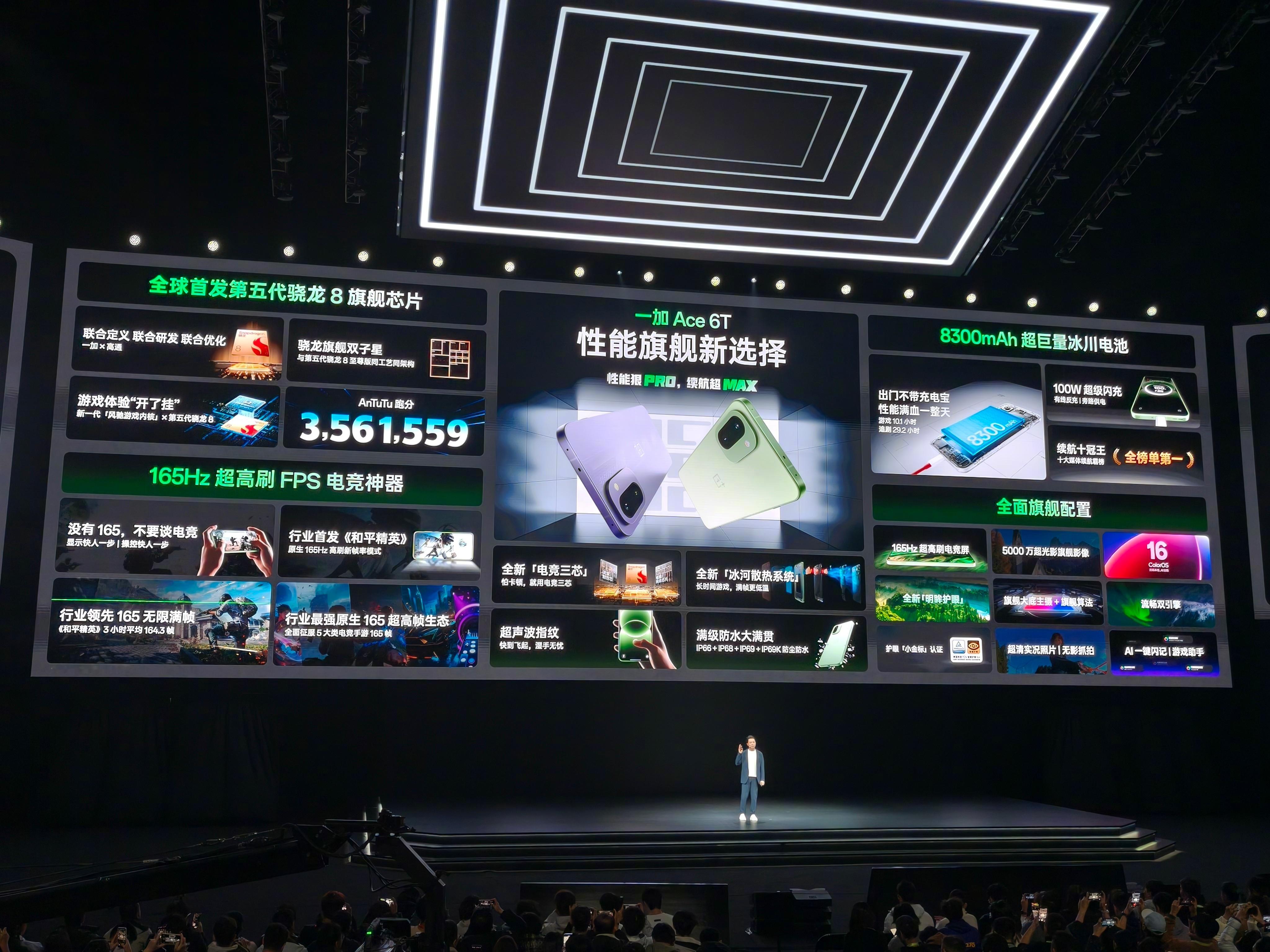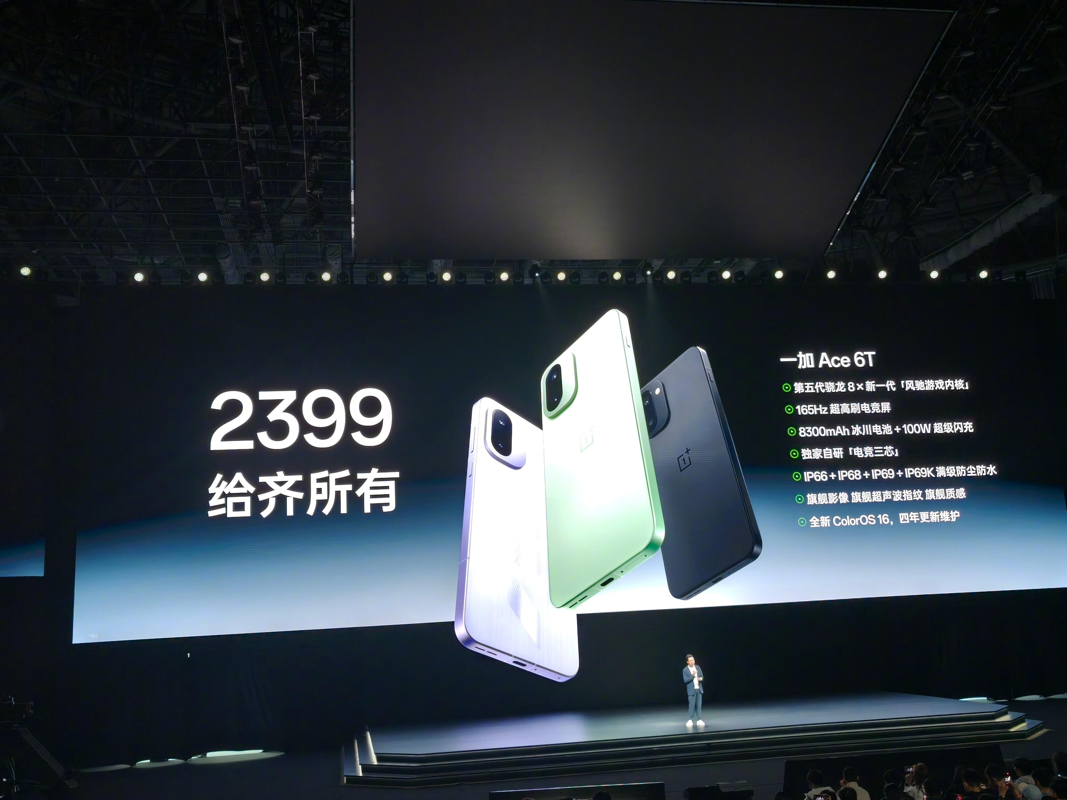 一加Ace6T新品发布 依然强大的游戏体验,且堪称全方位强悍的性能旗舰。 一加Ace6T搭载全球首发第五代骁龙8,并拥有风驰游戏内核,165Hz超高刷电竞屏+电竞三芯,首发《和平精英》原生165Hz满帧适配,可以说是职业联赛级游戏体验拉满。续航上, 一加Ace6T也带给我们满满的放心:8300mAh冰川电池+100W闪充,续航登顶各大榜单,出门不带充电宝也能满电一整天。除此之外,旗舰影像能力,IP66-69K防水大满贯+晶盾玻璃,并拥有ColorOS 16流畅保障,可以说是强悍好用更耐用。更惊喜的是,一加Ace6T首销优惠下2399元起即可到手,喜欢的朋友真可以冲了!