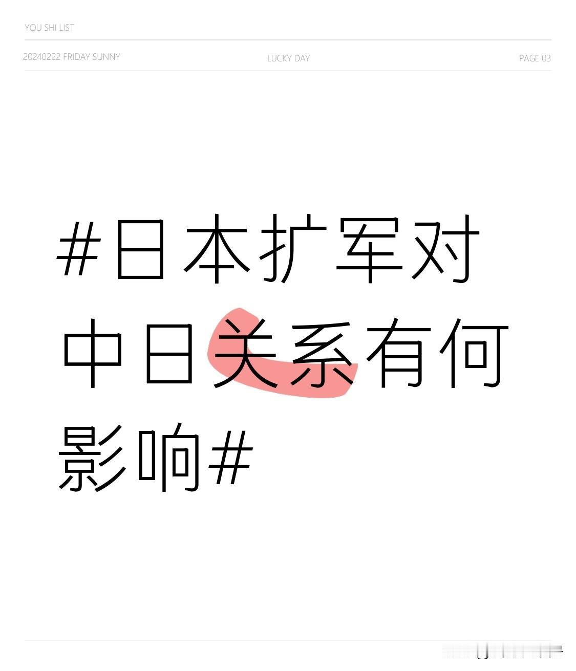 日本扩军对中日关系来说,无疑是一颗定时炸弹。如今日本强军壮武的套路,和二战前扩军备战如出一辙,首相高市早苗发表涉台挑衅言论,就是其试图突破和平宪法、重走军事扩张老路的危险信号。 多年来,日本自卫队早已超越自卫概念,借“自主防卫”之名,在西南诸岛大规模战备建设,2016 - 2024年投入上万亿日元。还在西南岛屿部署导弹、扩建港口机场,甚至计划部署“鱼鹰”运输机干涉台湾。这种扩军行为严重破坏地区和平稳定,让中日关系陷入紧张,未来充满不确定性,必须对其保持高度警惕。