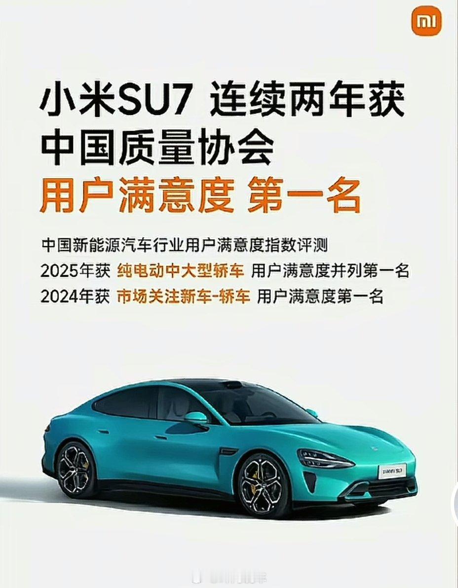 小米su7 “连续两年”“用户满意度第一名”这高低得给雷总点赞!