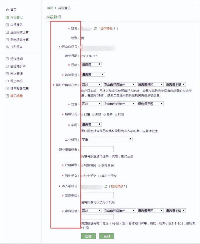 2.打印表格。信息填写完整后,打印《男性公民兵役登记表》。