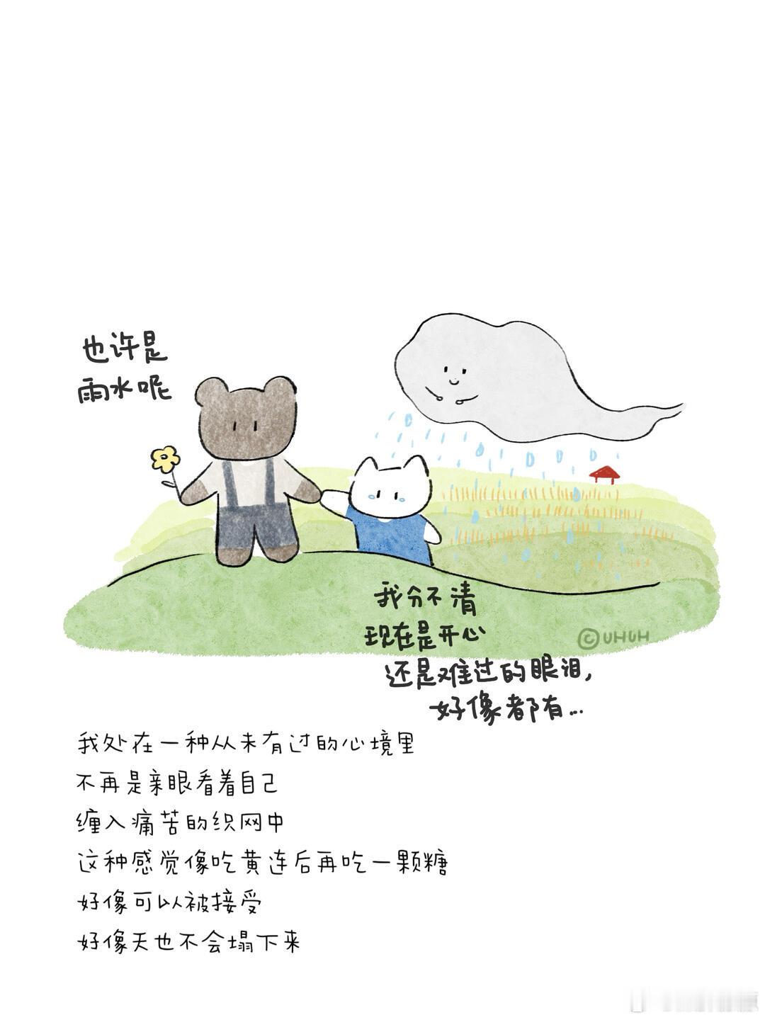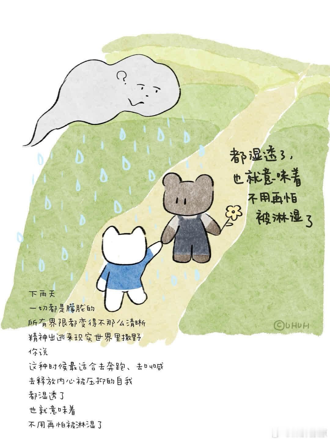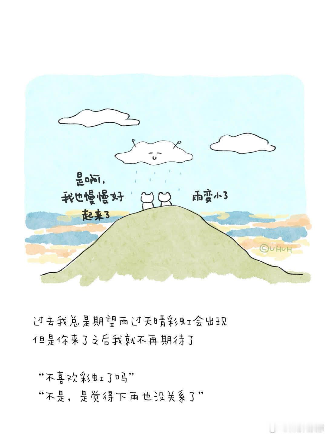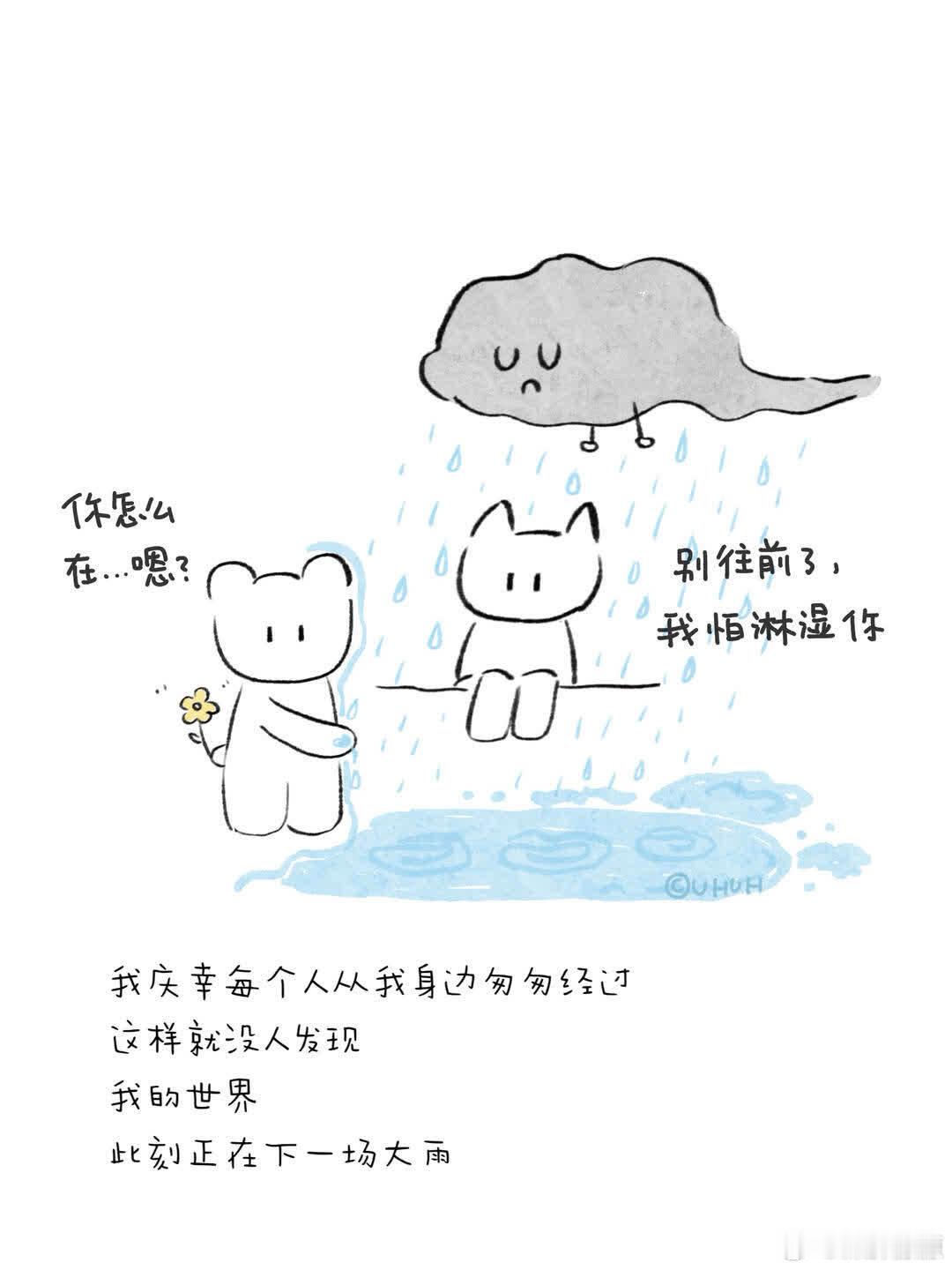 会有人穿过大雨来拥抱你 下雨天 一切都是朦胧的 所有界限都变得不那么清晰 精神出逃来现实世界里撒野 都湿透了 也就意味着 不用再怕被淋湿了 过去我总是期望雨过天晴彩虹会出现 但是你来了之后我就不再期待了 “不喜欢彩虹了吗” “不是,是觉得下雨也没关系了” —— 会有人穿过大雨来拥抱你[玫瑰R][彩虹R]
