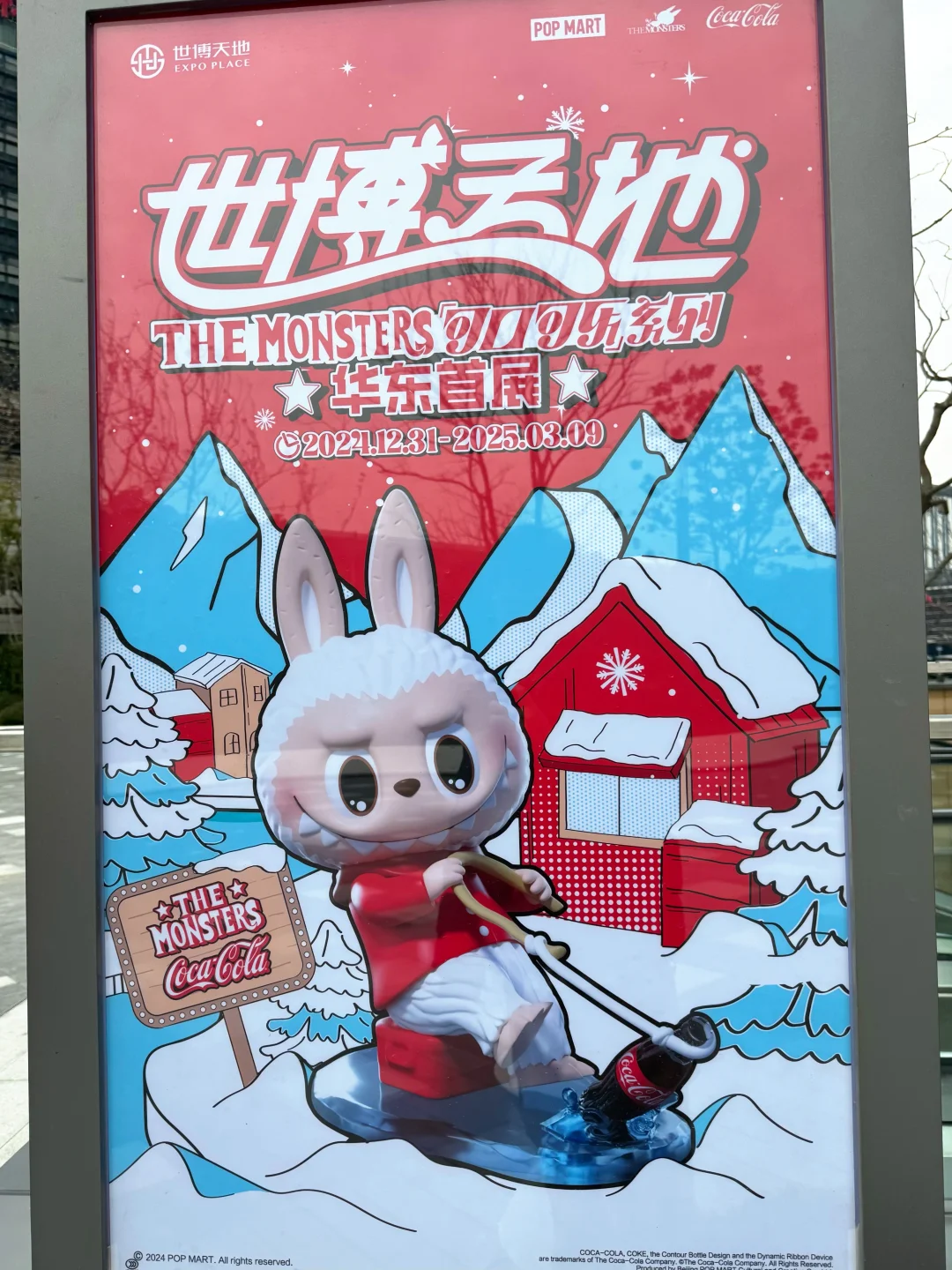 LABUBU&可口可乐华东首展。 [拍立得R]2024.12.31-2025.3.9 上海「世博天地」购物中心 🚇地铁8号线中华艺术宫3号口出 [清单R]是世博天地,不是世博源!俩挨着但不是同个地方。来参加活动的LABUBU都是今年冬季可口可乐联名系列盲盒放大版。 [加一R][加一R][加一R][加一R] 有免费活动,有免费礼品 有抽奖,有扭蛋,有限定周边