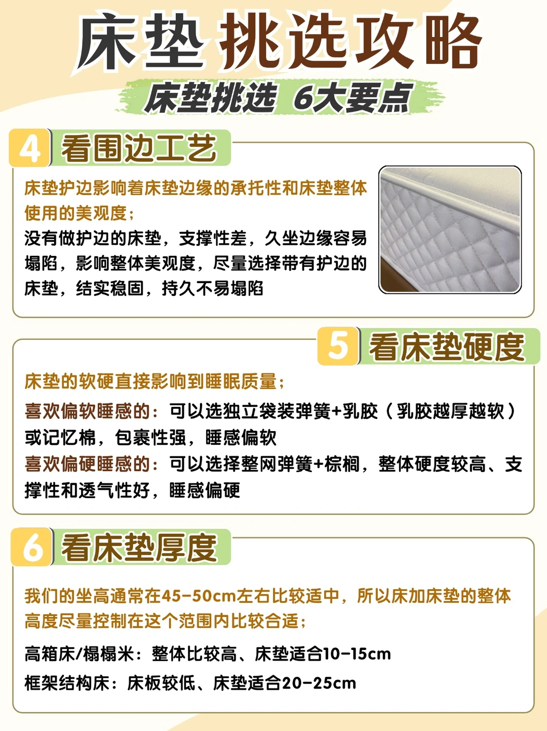 尽量选择带有护边的床垫,日常久坐更加结实稳固,不容易塌陷