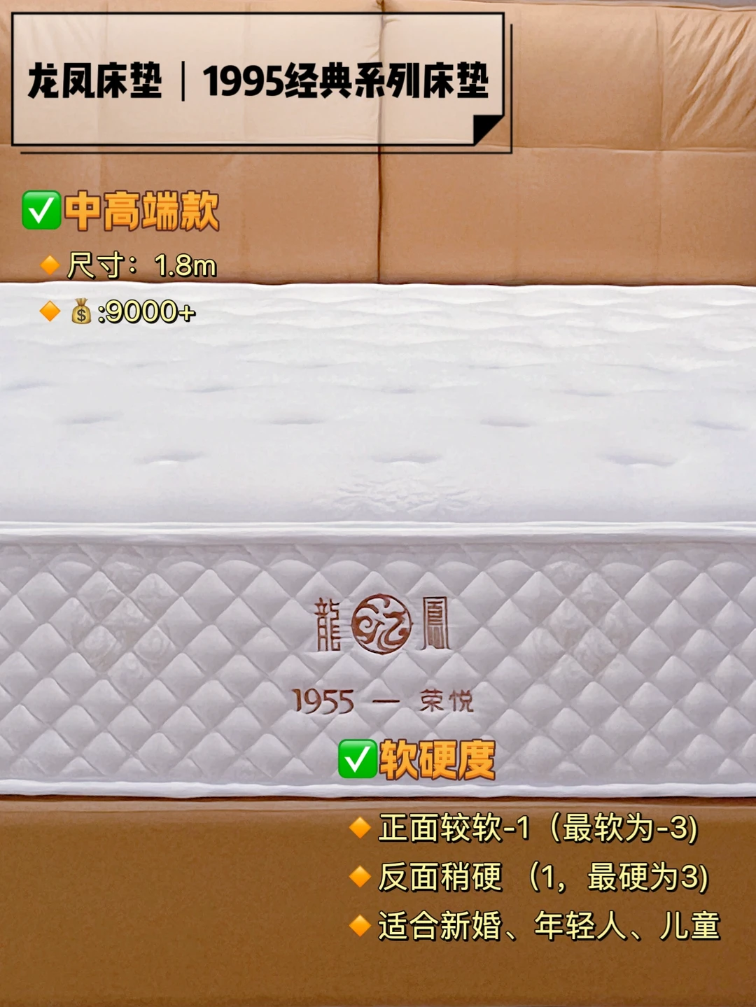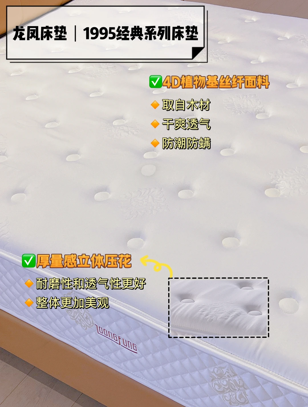 新家装修看了很多款床垫zui终选择了龙凤1955经典系列床垫,选择这款床垫是因为龙凤床垫是上海本地一家中華老字号,品质有保障,服务和口碑都很好。试睡过程中感受到床垫触感柔软,亲肤透气,支撑力和稳定性都很好,很适合年轻人使用~