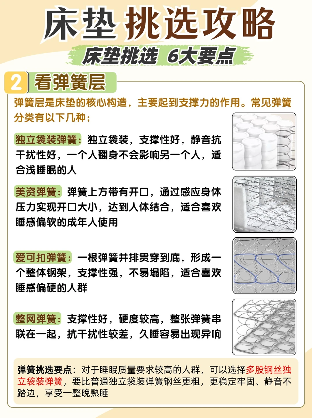 如果睡眠较浅,弹簧层可以选择多股钢丝独立袋装弹簧,要比普通独立袋装弹簧钢丝更粗,更稳定牢固,静音效果也更好