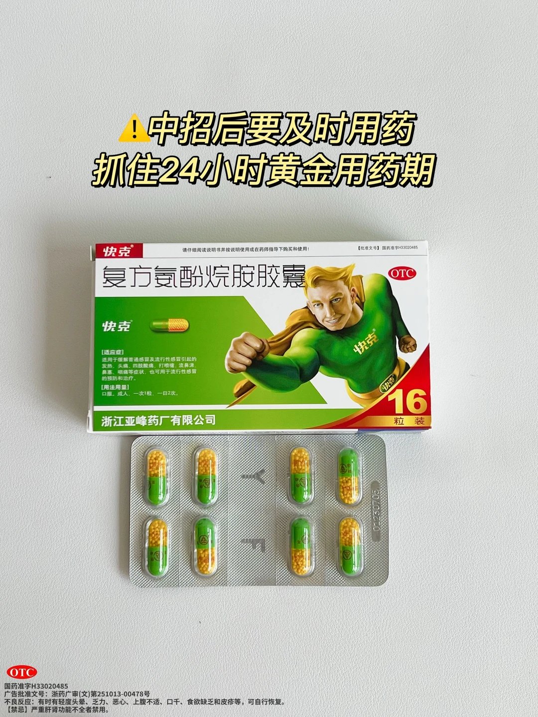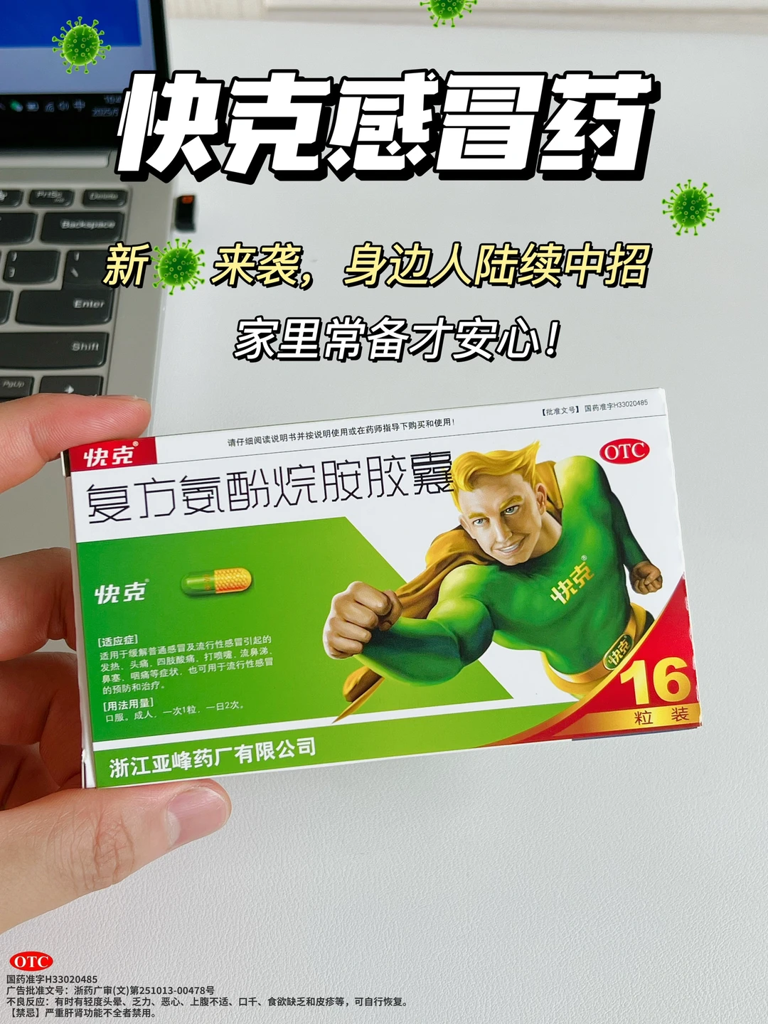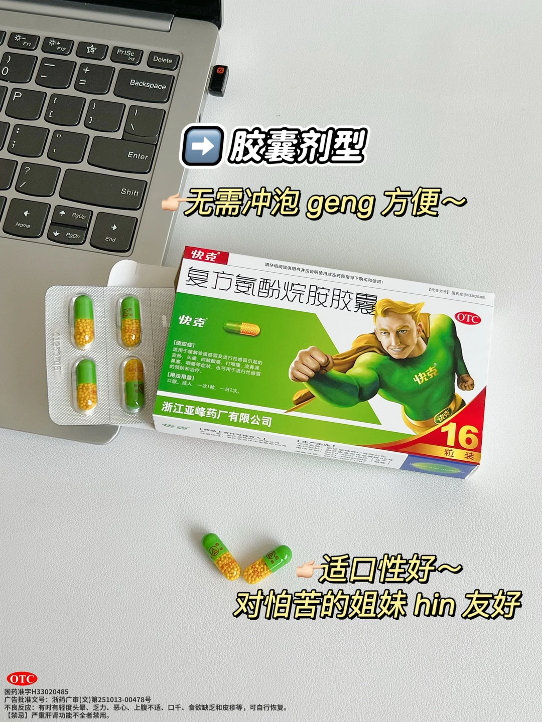 赶紧拿出手机外卖给补上,这次选了快克感冒药,里面含的专研的抗病毒成分可以抑制病毒!而且中招后发热、头痛、四肢酸痛、打喷嚏、流鼻涕、鼻塞、咽痛等都能用,还可以预防流行性感冒。主要它的包装是可撕铝板设计包装,胶囊剂型,更好服用也方便携带,对于我们经常出差的人也比较友好