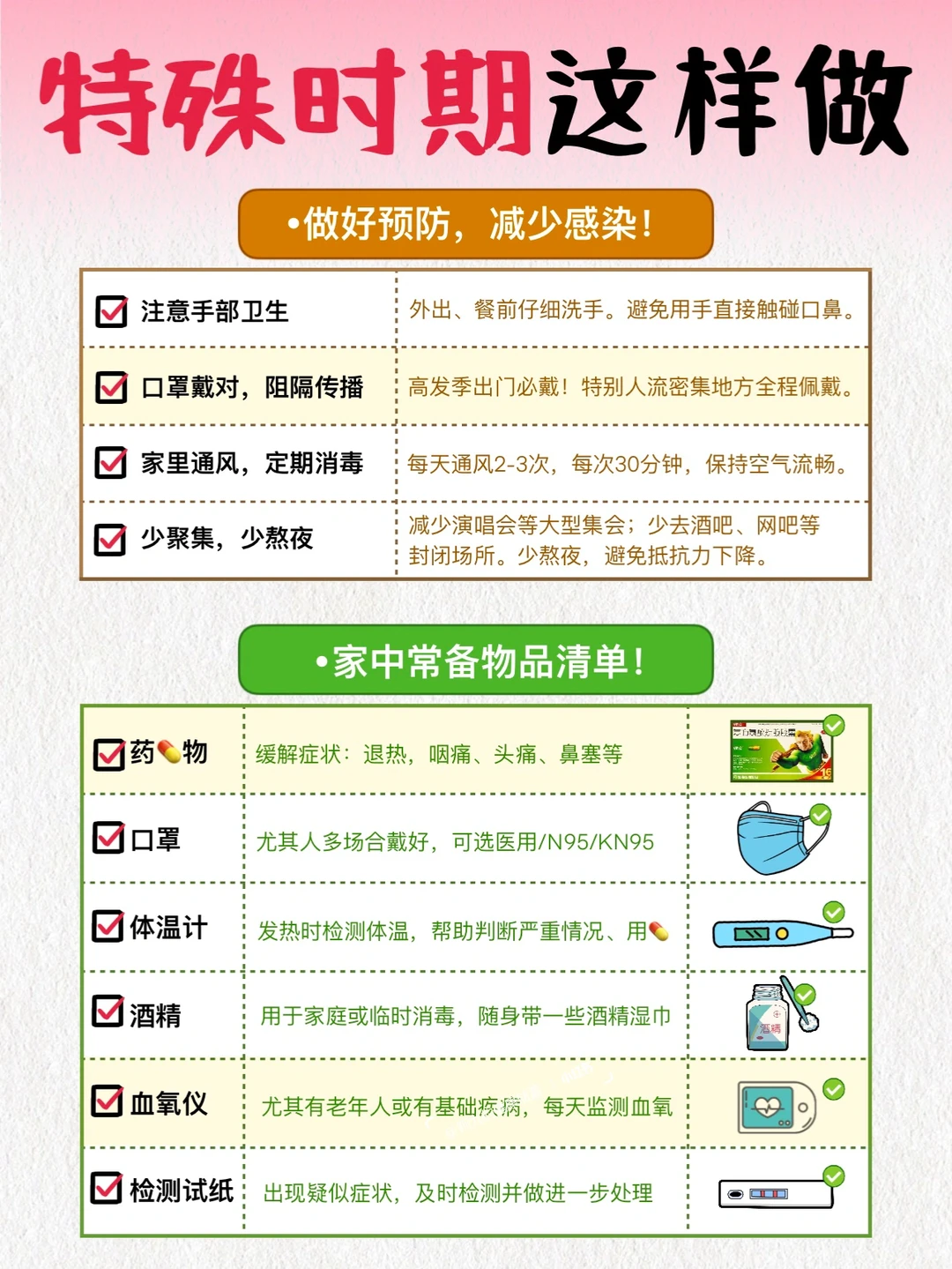 赶紧检查家里有没有这些:口罩、体温计、酒精、血氧仪(特别是家里有老人小孩的)、感冒药、检测试纸。