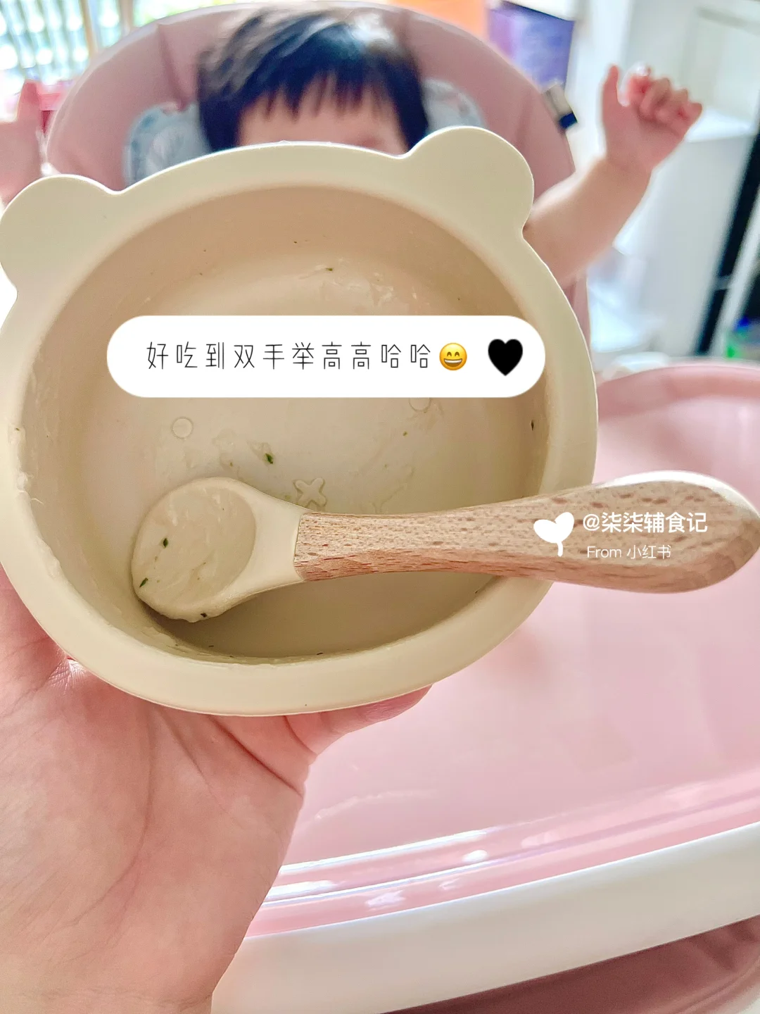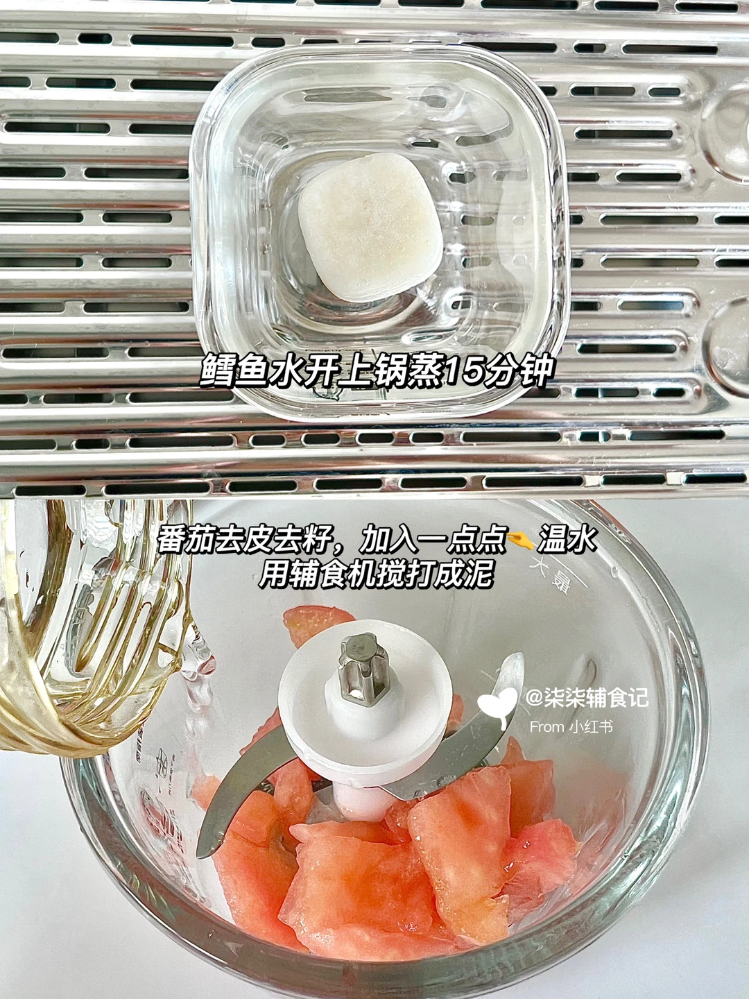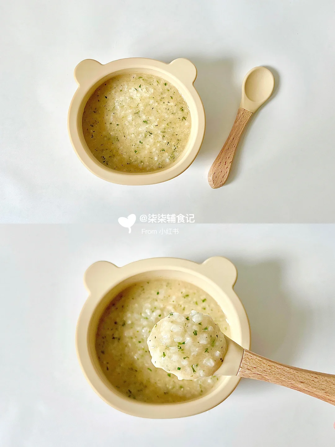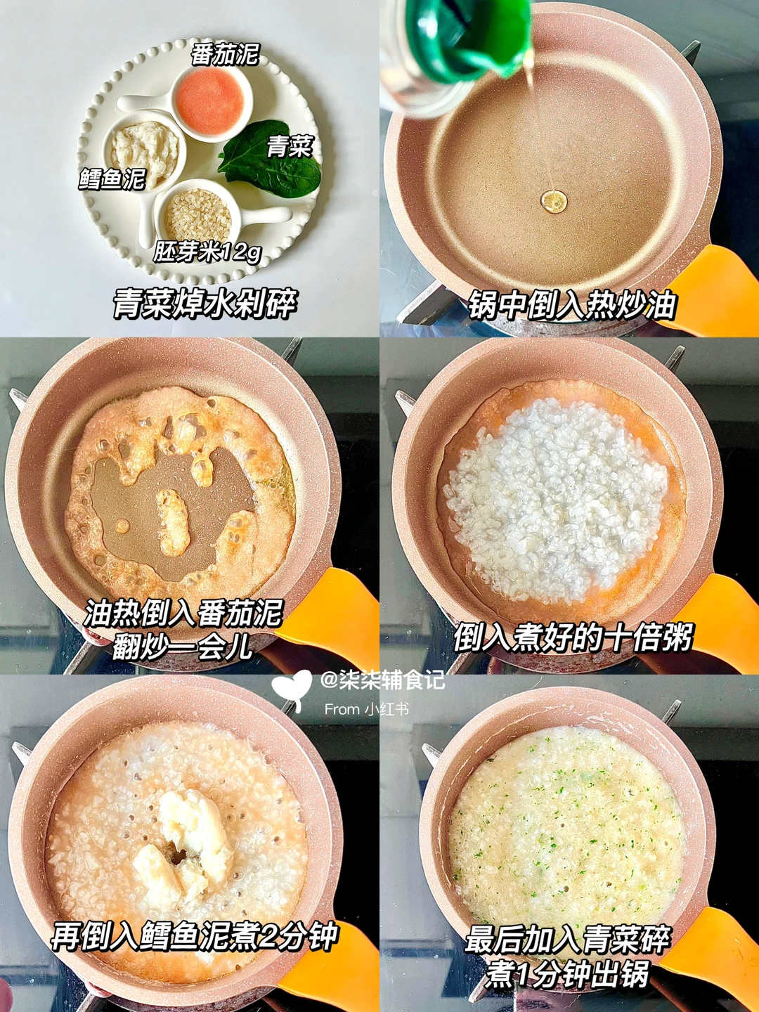 📝:胚芽米12g➕鳕鱼泥➕番茄泥➕青菜碎