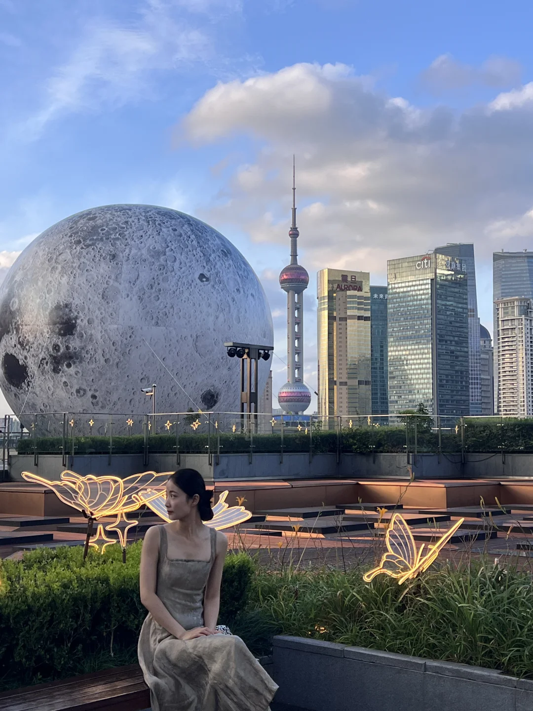 大型艺术装置放置在露台处,晚上亮灯会更好看,从商场直梯直接上5楼就能看到,很震撼!