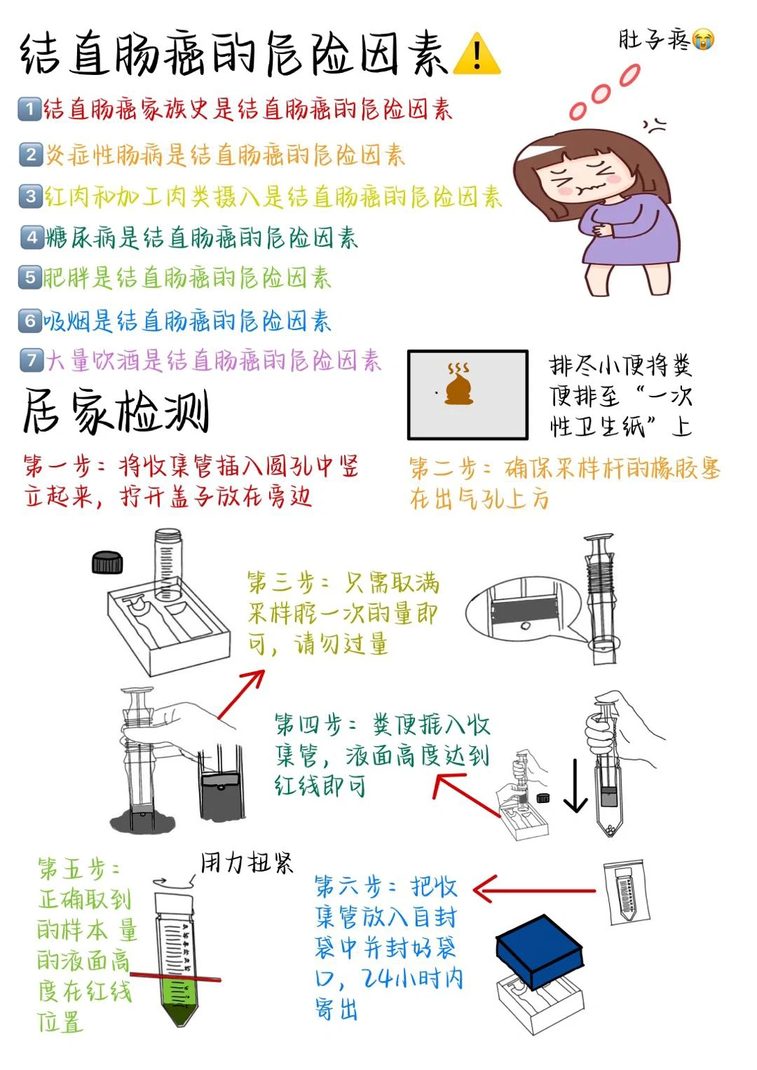 🌼辅助检查:1⃣️结肠镜检查(确诊)需要做肠道准备,花费时间长。2⃣️粪便隐血。3⃣️超声检查。4⃣️艾迪康小蓝盒粪便DNA检测:“筛查”、居家检测、操作简单,舒适度高。