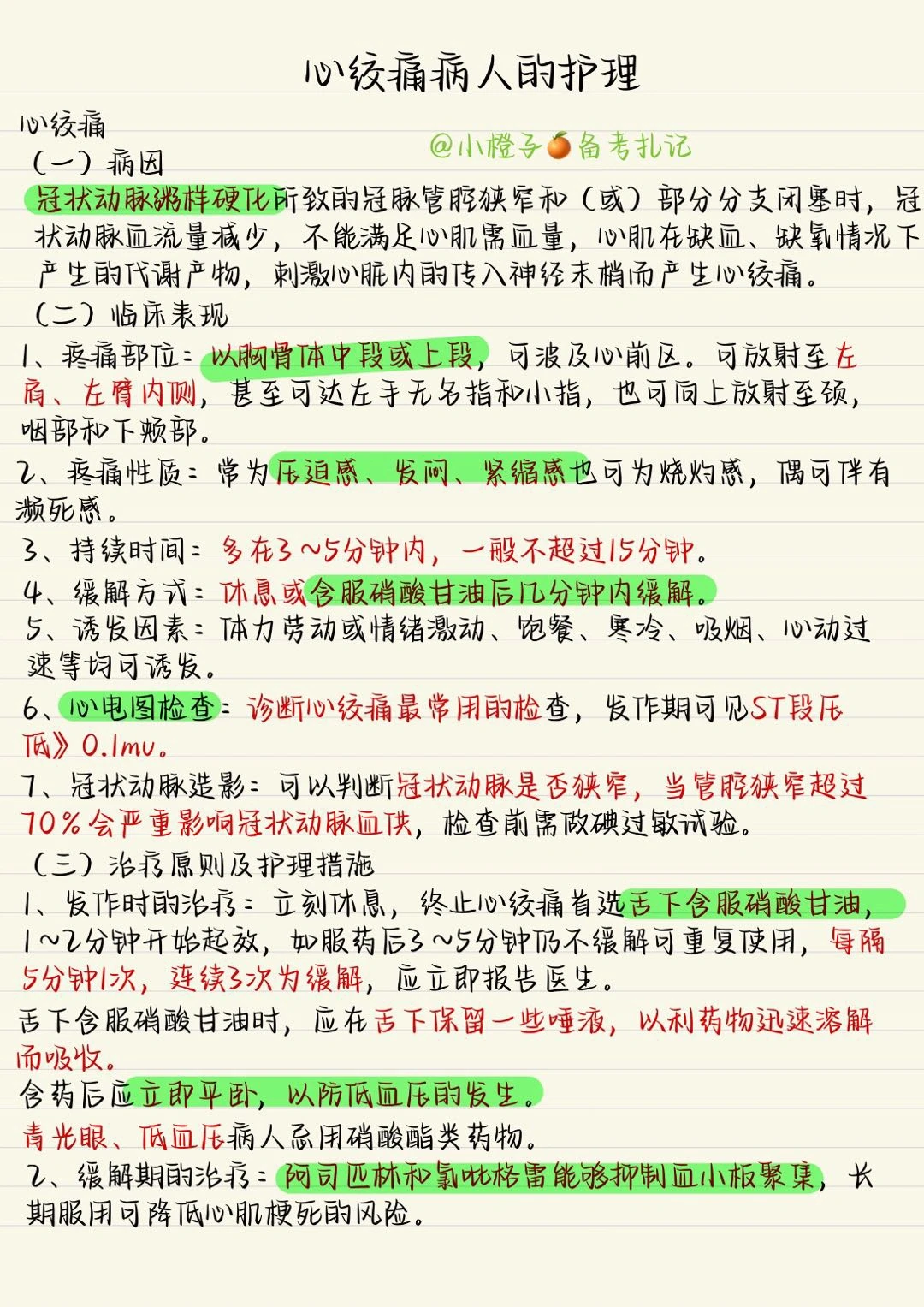 🌟今日笔记分享内科护理学心绞痛🙋