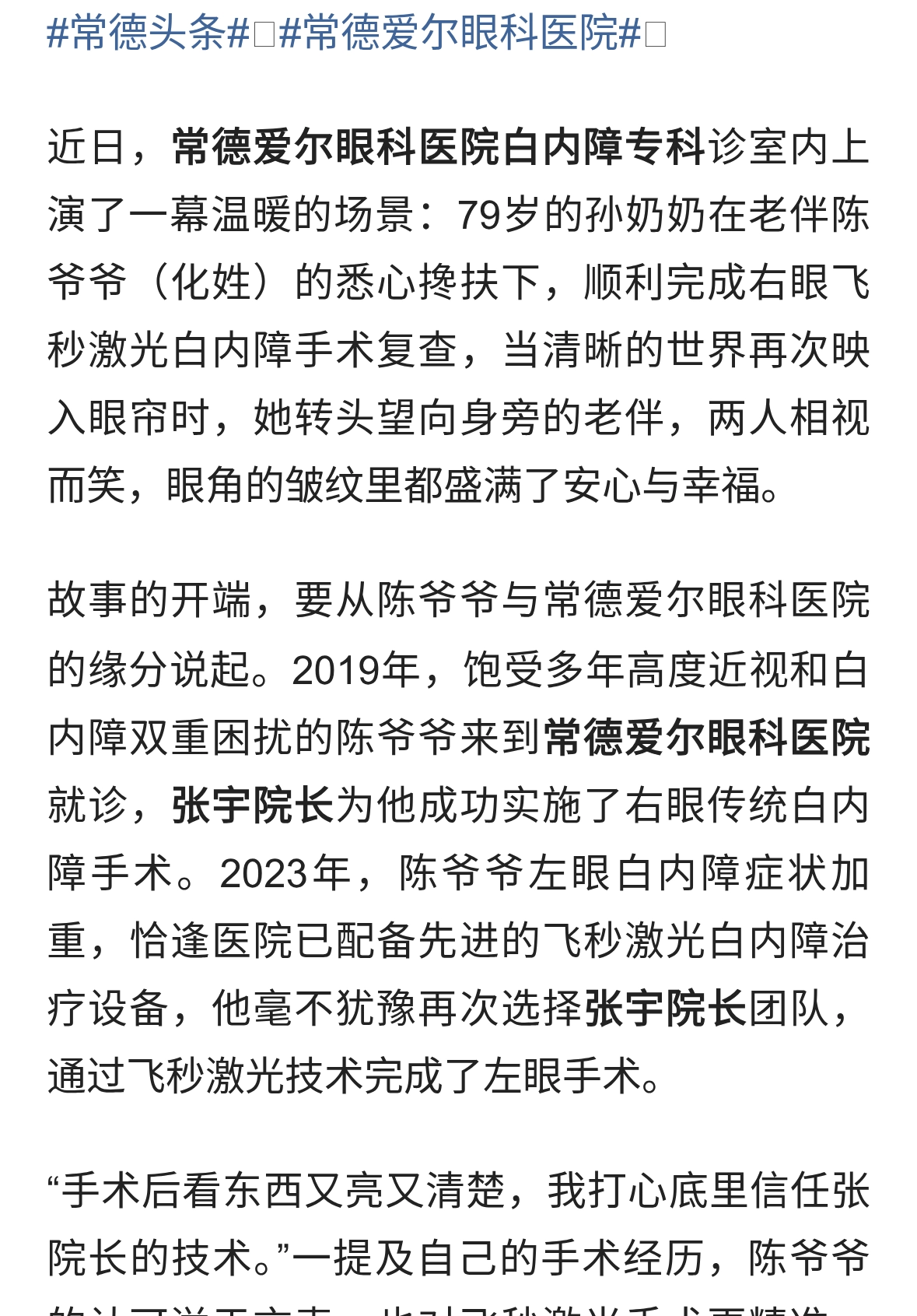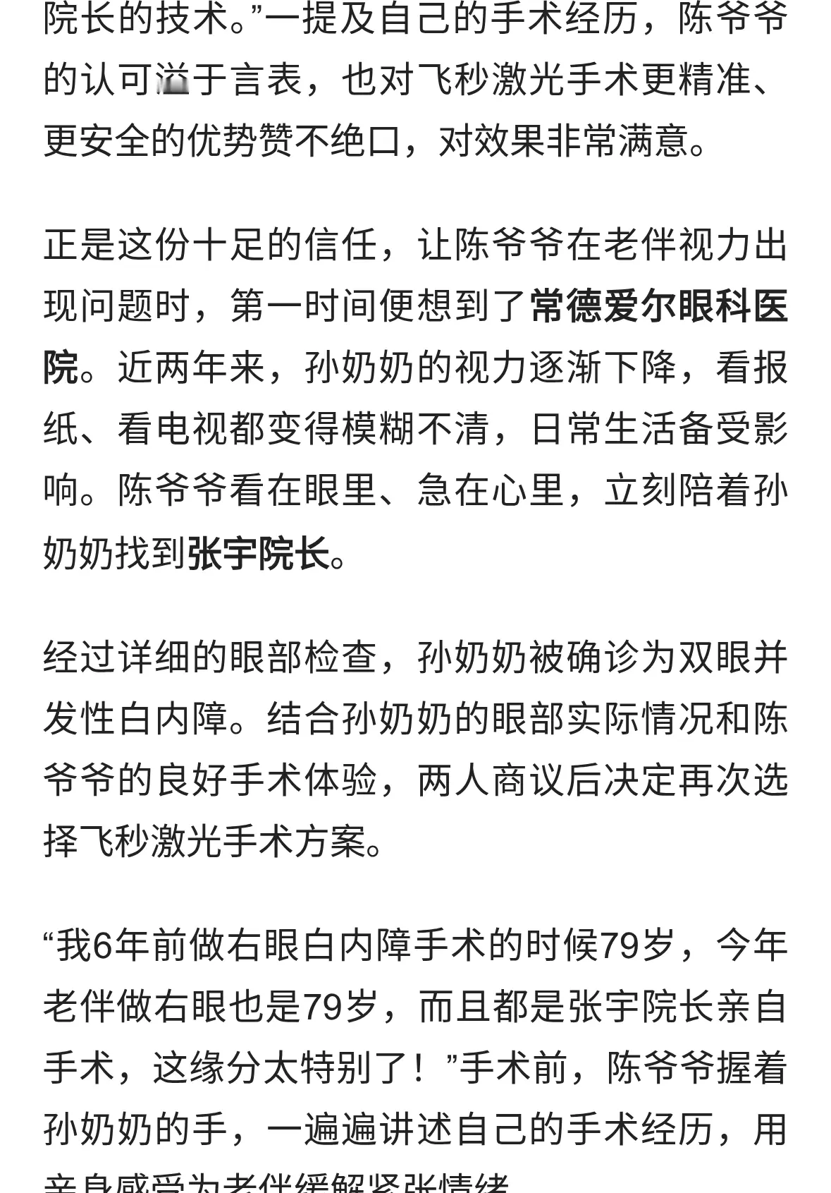 相伴一生,同院复明!飞秒激光助七旬夫妻“拨云见日”共享光明