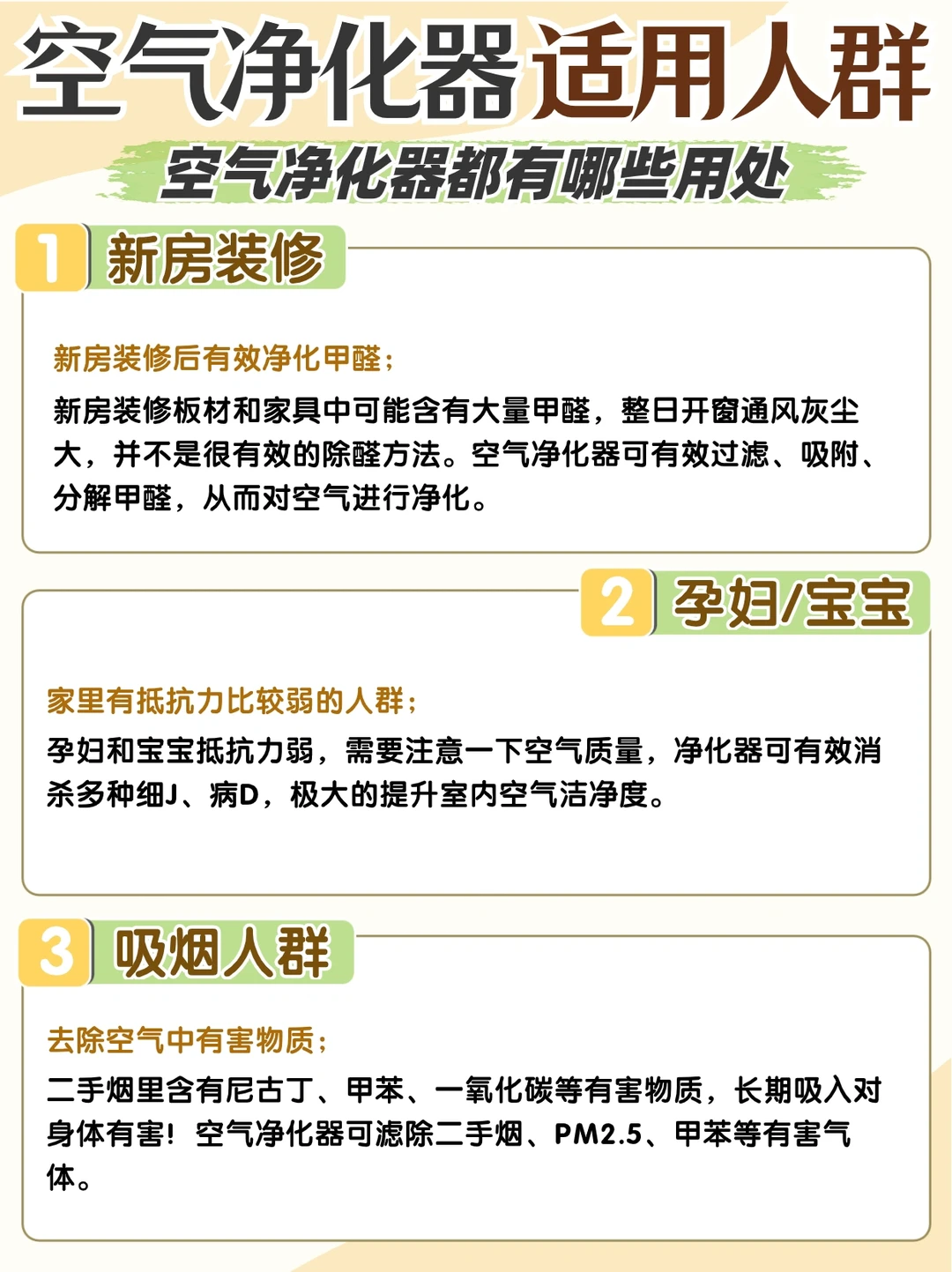 空气净化器不仅能有效净化新房装修后空气中的甲醛,还能为宝宝创造一个健康舒适的生活环境,而且对于吸烟人群来说,空气净化器也是必不可少的家居神器。它能迅速净化空气中的有害物质,减少二手烟对家人的危害‼
