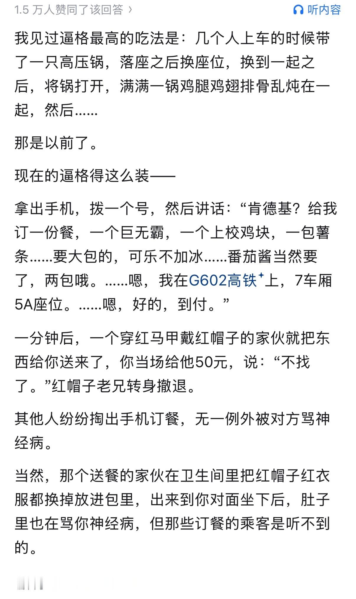论火车上吃什么最有逼格,有什么食品是既能饱腹,又能显得逼格高高的,在车厢的芸芸众