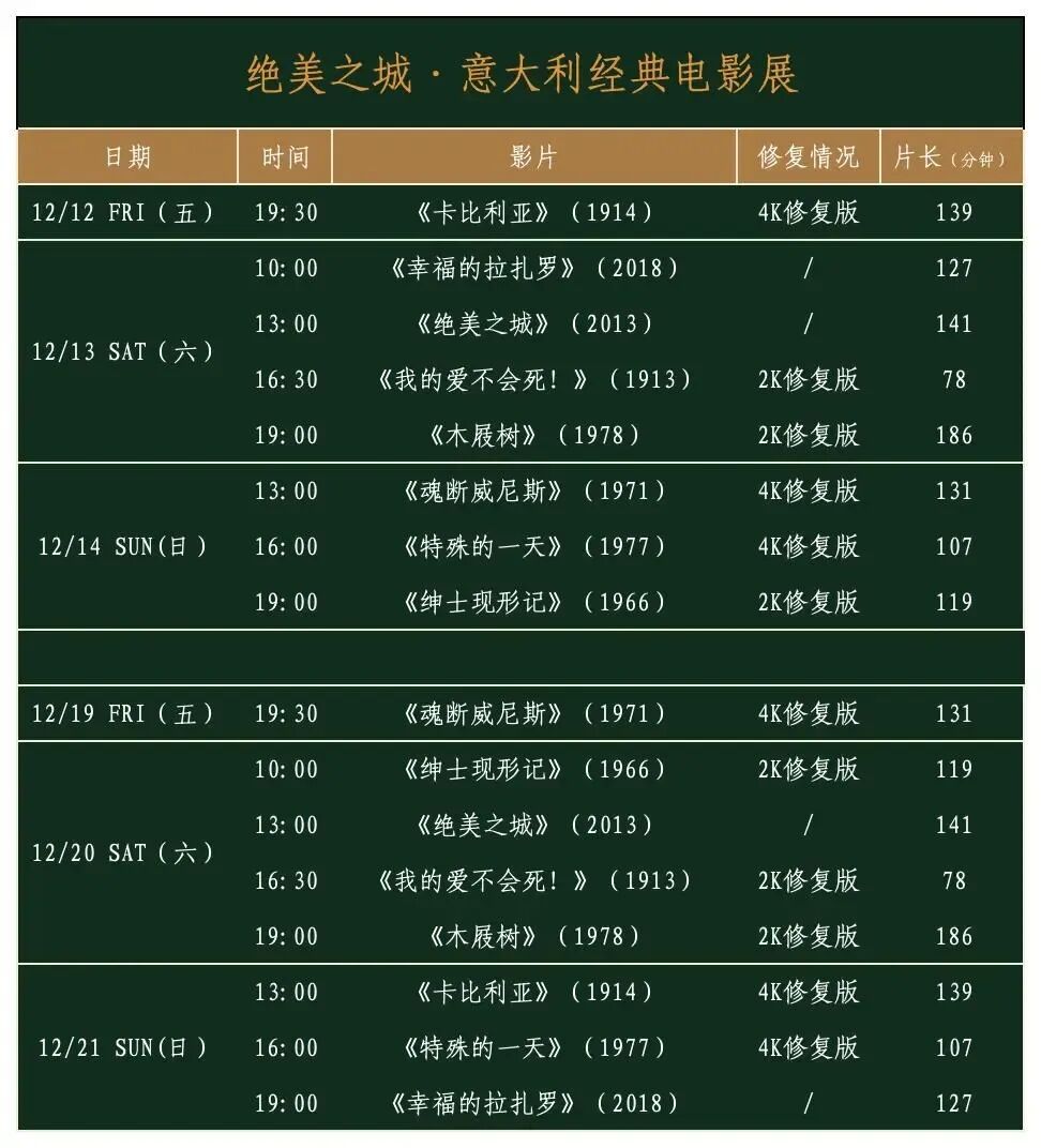 影展 上海电影博物馆绝美之城·意大利经典电影展排期公布,SHO杜比影厅特别呈现,真的很高规格了,现已开票。今年《绝美之城》真的放了好多城市。