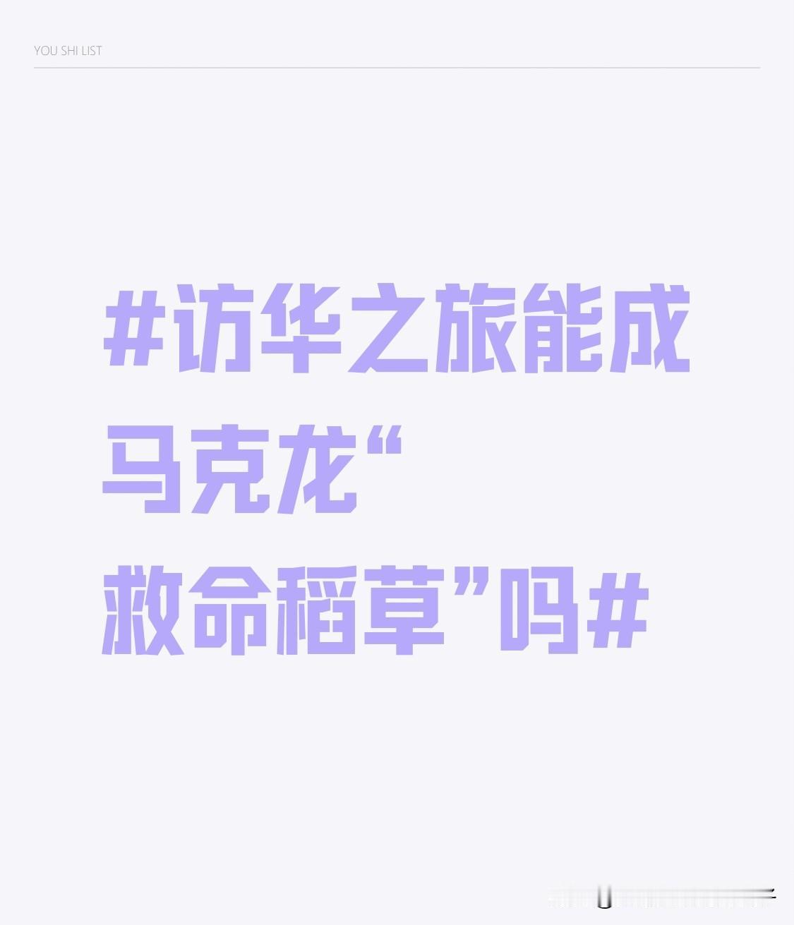 访华之旅能成马克龙“救命稻草”吗 12月初马克龙决定访华,这背后大有深意。当下欧洲局势焦虑,俄乌对峙、中东战火未熄,美国却隔岸观火,还拉盟友站队,法国这样的大国也得另寻出路。 法国国内也不太平,街头抗议不断,产业工会找茬,右翼势力崛起。马克龙虽喊着经济复苏口号,却一直没找到稳经济的法子。 而中国市场坚挺,营商环境好。去年法国对华出口在奢侈品、农产品等领域依旧出色,很多老牌企业早已行动。爱丽舍宫透露,此次访华主打交通和能源领域,像空客飞机、核电大单。这访华之旅要是能促成合作,或许真能成为马克龙的“救命稻草”。