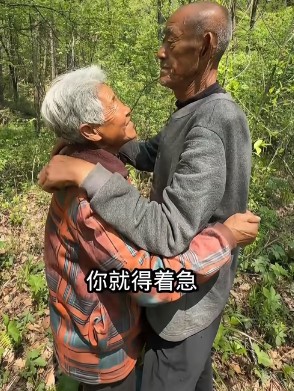着急的大爷,摘野菜大娘迷路了,最后找到好开心了。恩爱的老夫妻。