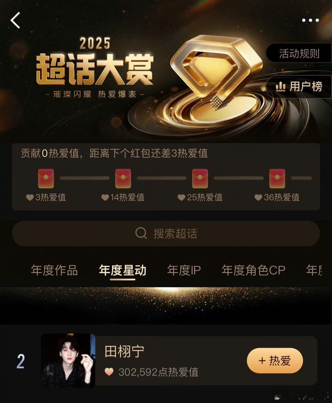 柠檬水们对田栩宁的爱意升温中田栩宁超话热爱值破30万 超话热爱值破30万的成绩太能打,柠檬水的爱意正疯狂升温!田栩宁的吸引力和粉丝凝聚力直接拉满!